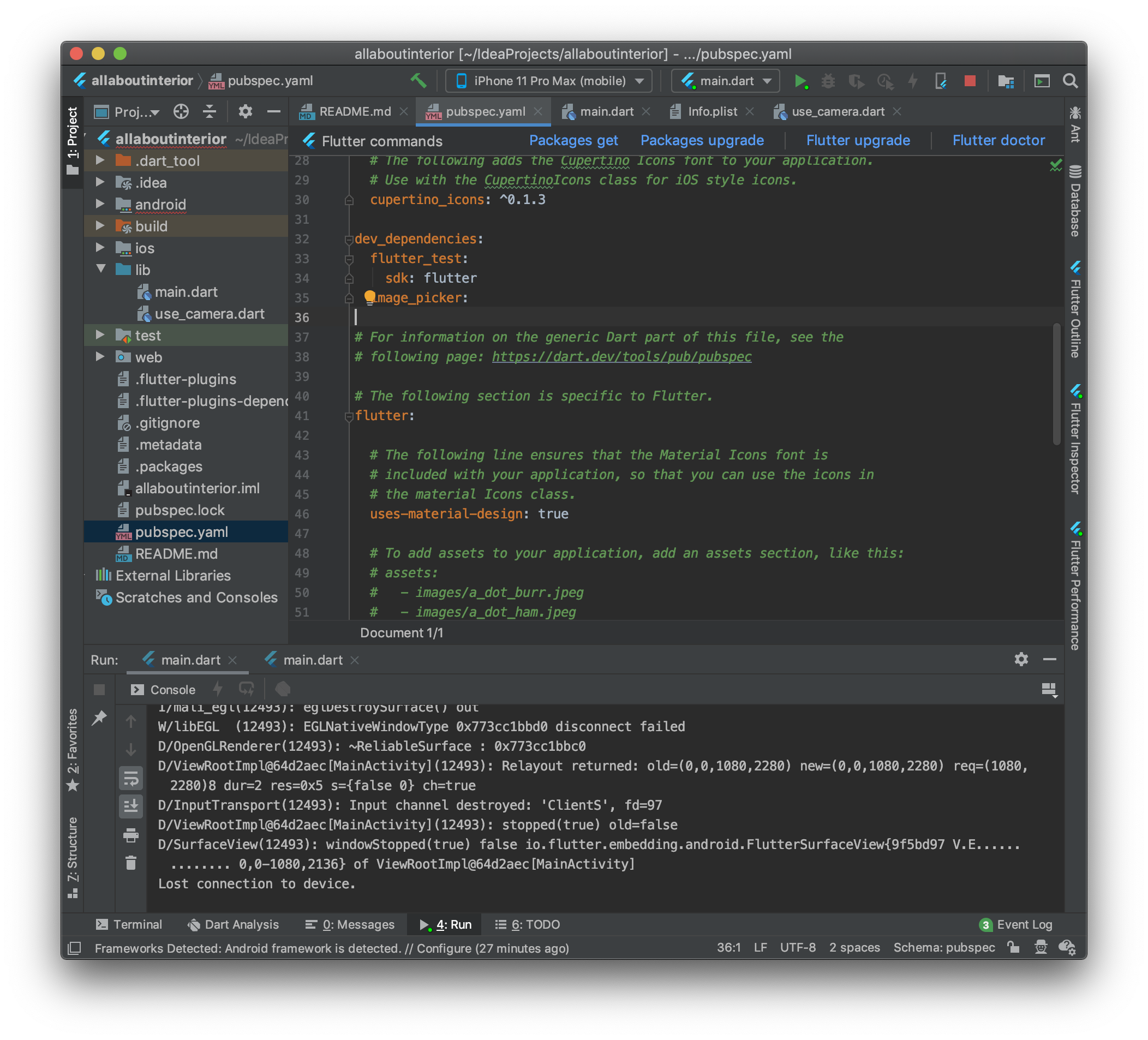 1. pubspec.yaml 에 의존성 추가하기 (라이브러리 가져와서 사용하겠다는 의미)