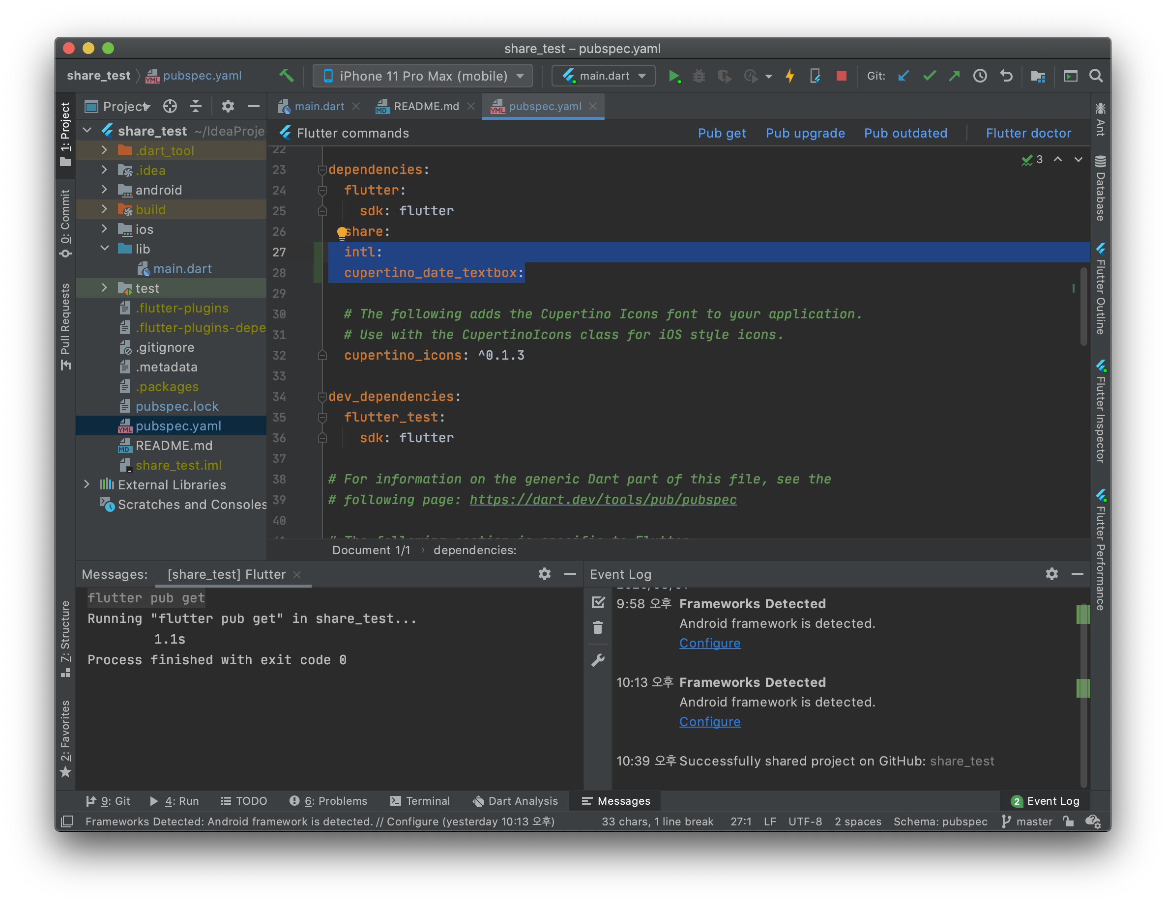 1. pubspec.yaml 파일에 의존성 추가하기 : share 패키지