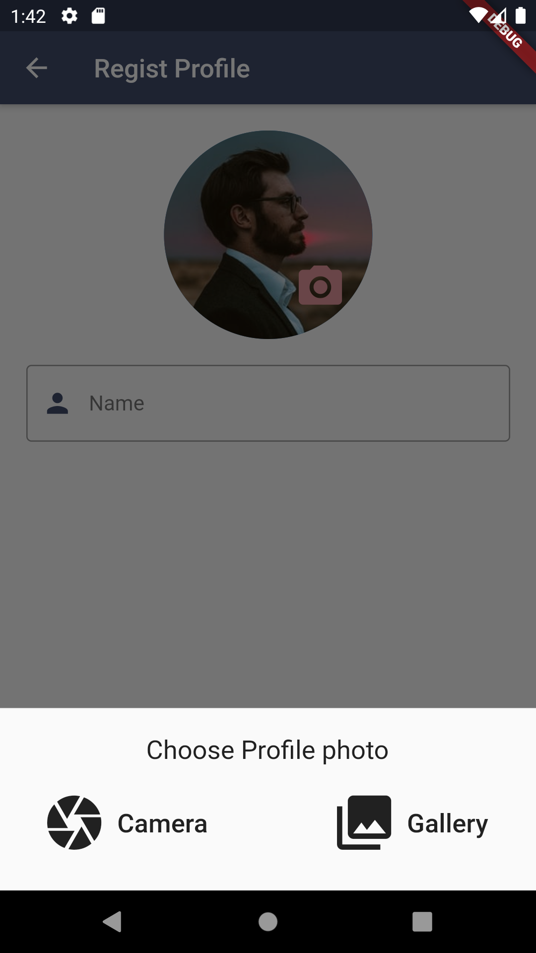 1. Profile camera 아이콘 클릭 => 카메라로 찍기 / 갤러리에서 가져오는 모달창 생성