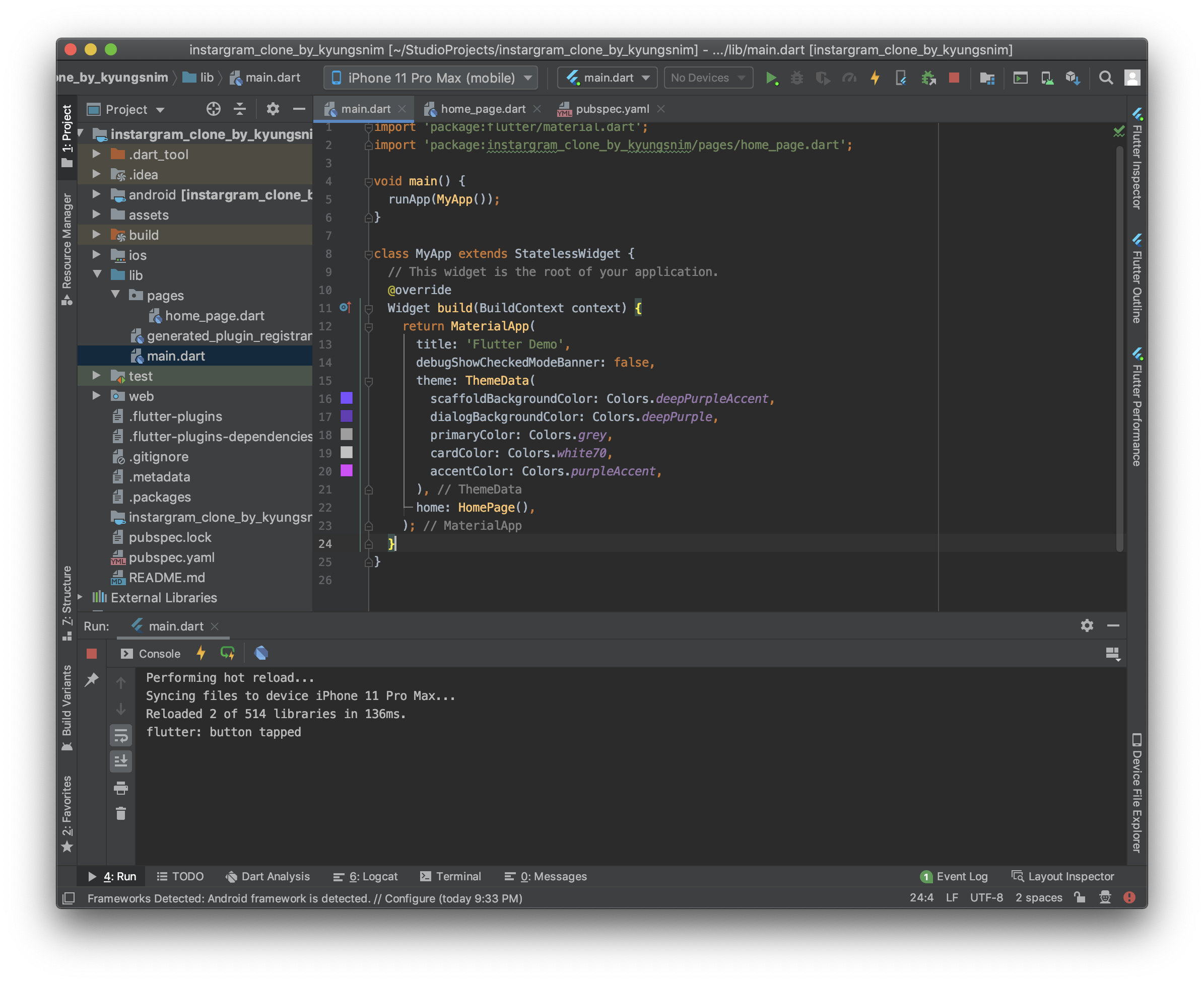 - home_page.dart 파일을 생성하고 간단히 구글 버튼을 추가해보자.