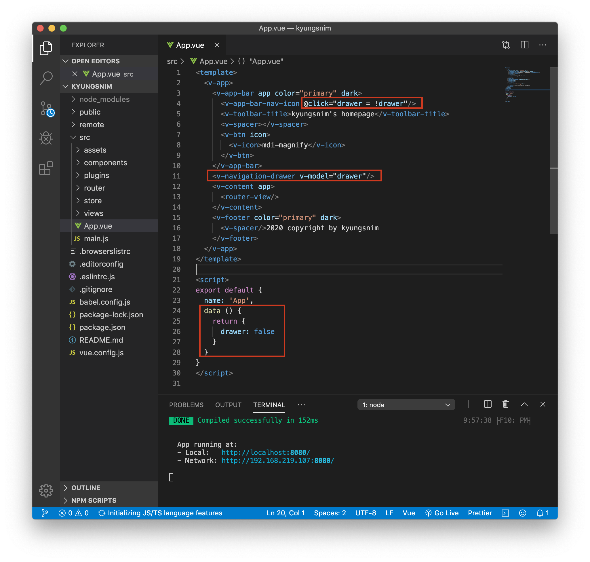 - 하나하나 추가하는 맛이 있긴 한데, 어째 App.vue 파일이 상당히 더럽고 소위 말하는 '가독성'이 떨어진다. (소스를 보고 어떤 기능들을 하는지 한 눈에 파악하기 쉬워야 좋은 코드인데 위의 코드는 뭔가 정리가 안 된 기분이다.)