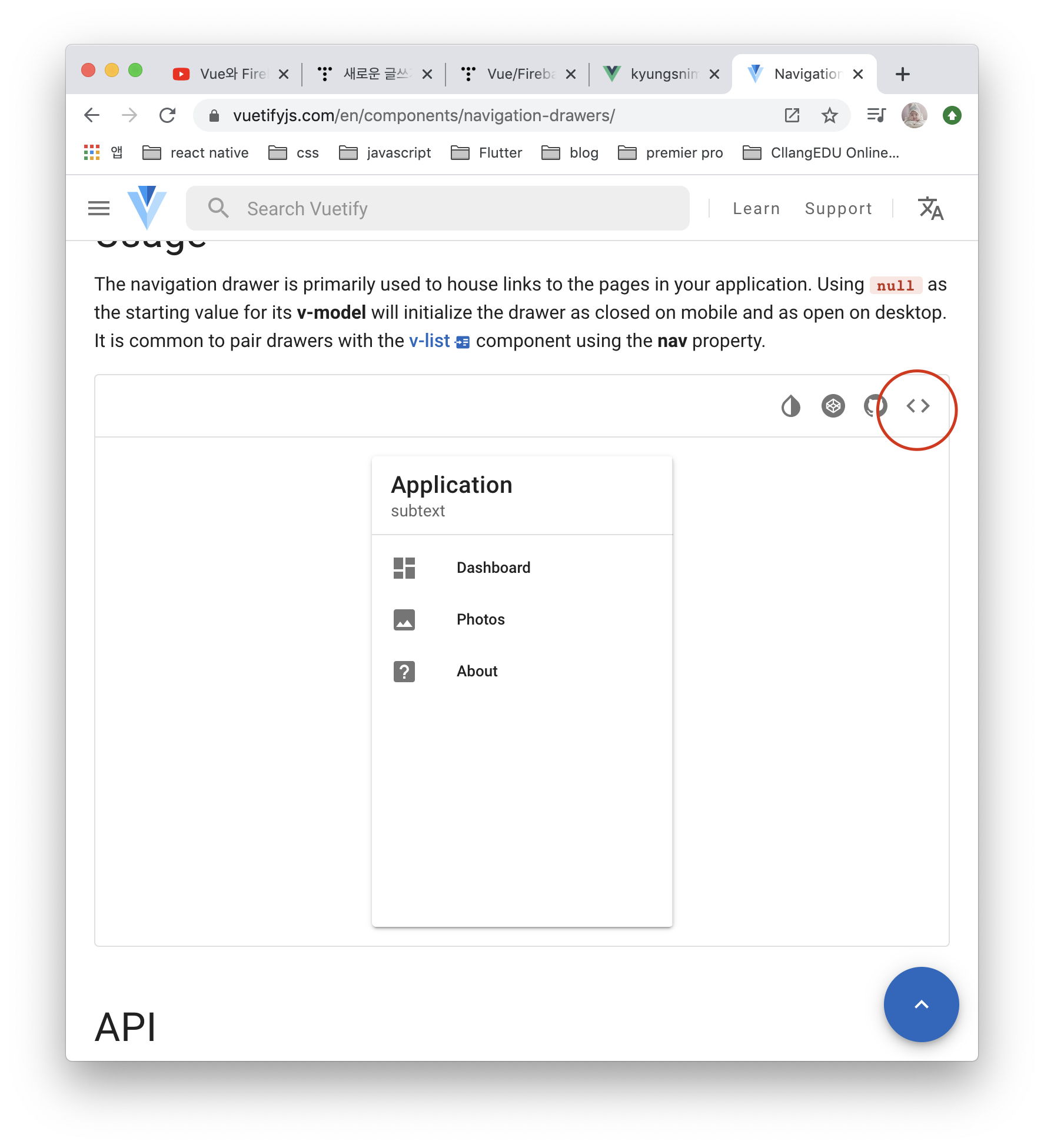 - 아래의 사이트로 접속하여 Navigation drawers에 대한 예제코드를 살펴보면 도움이 될 것이다.