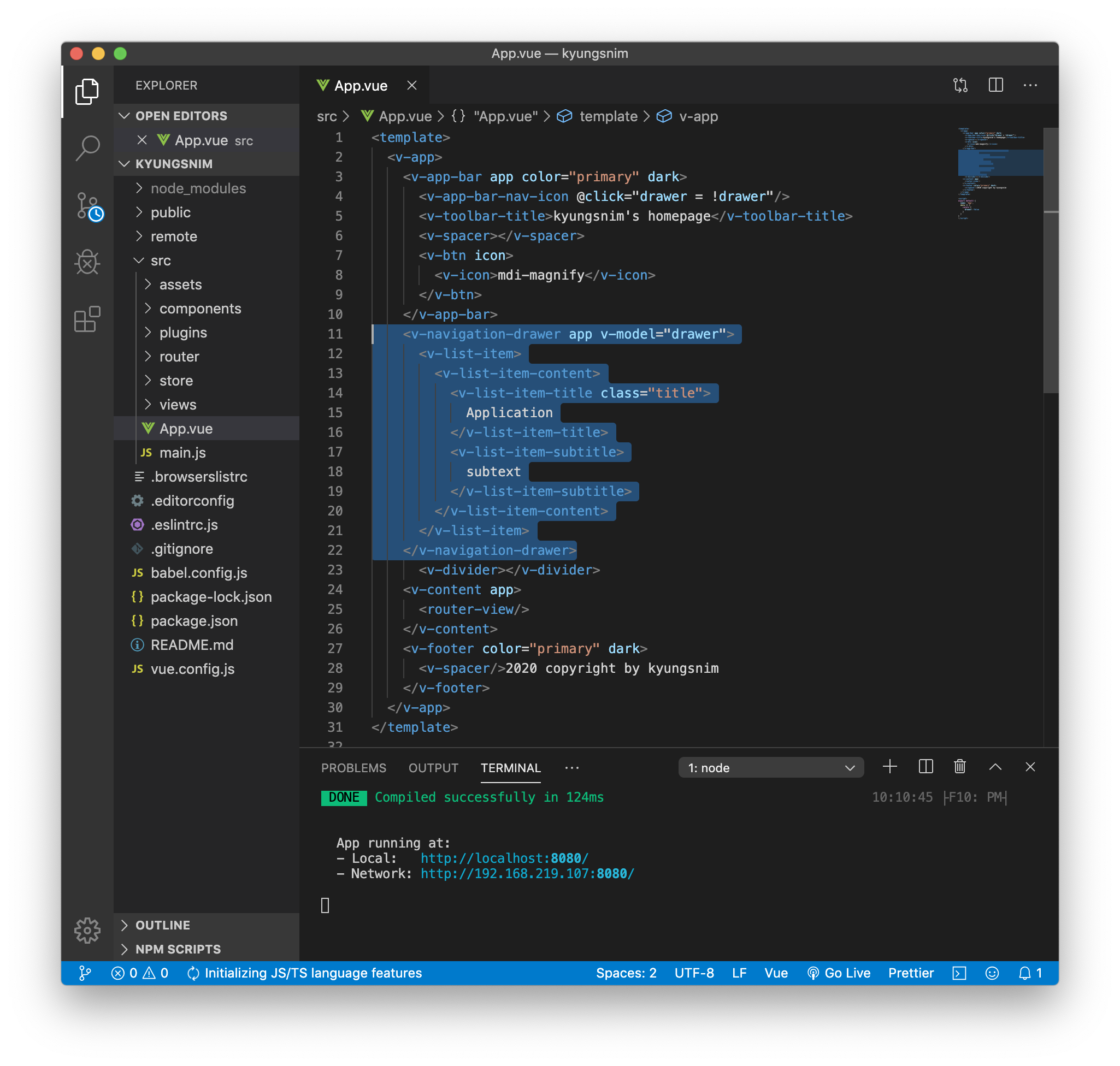 - 하나하나 추가하는 맛이 있긴 한데, 어째 App.vue 파일이 상당히 더럽고 소위 말하는 '가독성'이 떨어진다. (소스를 보고 어떤 기능들을 하는지 한 눈에 파악하기 쉬워야 좋은 코드인데 위의 코드는 뭔가 정리가 안 된 기분이다.)
