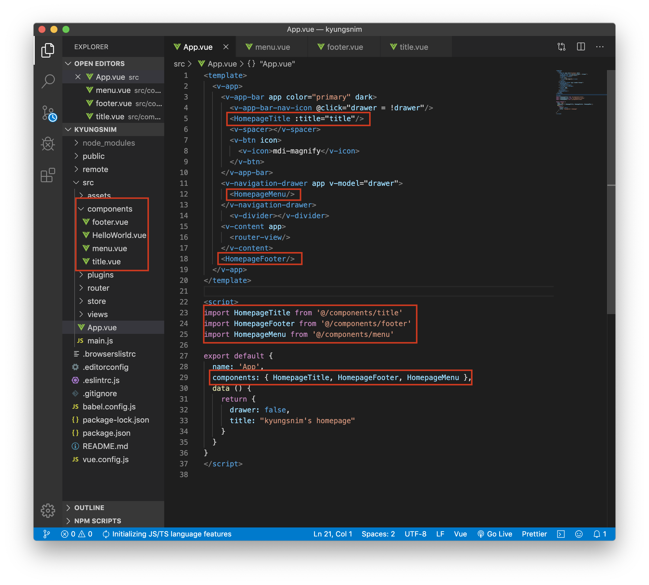 - components 폴더에 title.vue 파일 생성 후 위 코드를 옮기자.