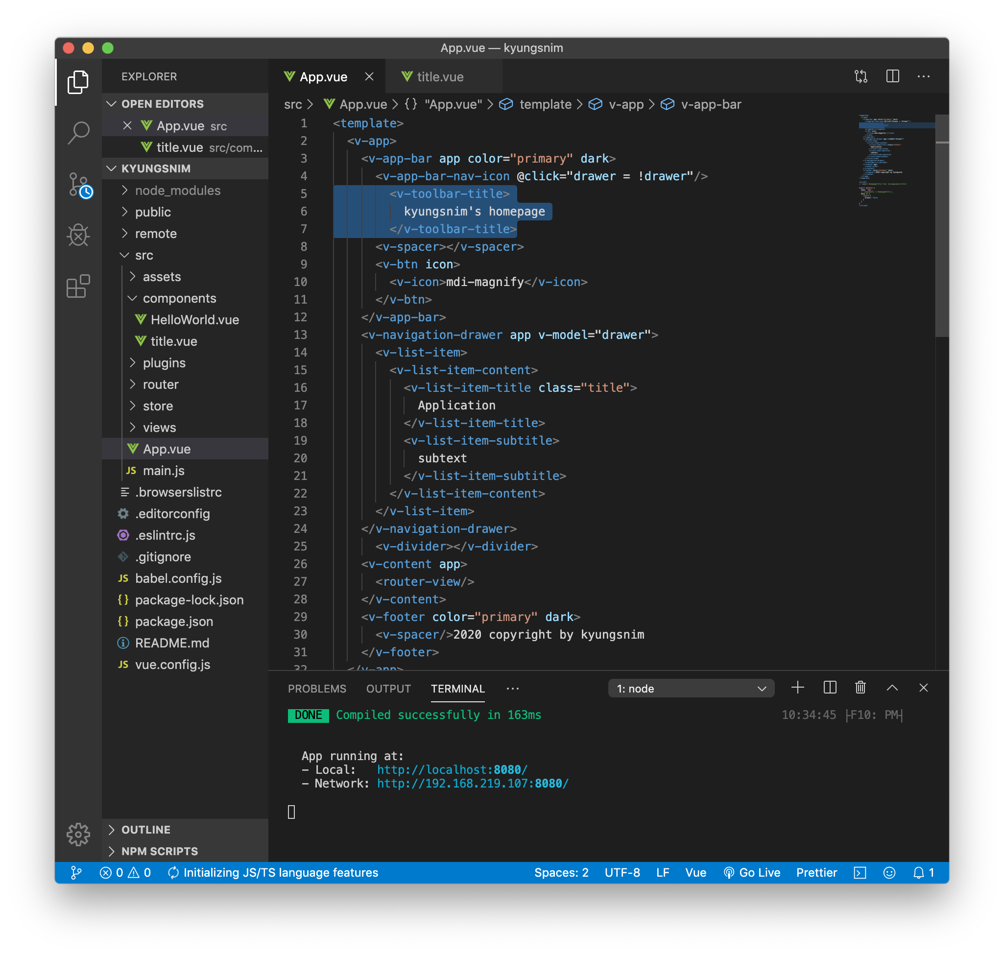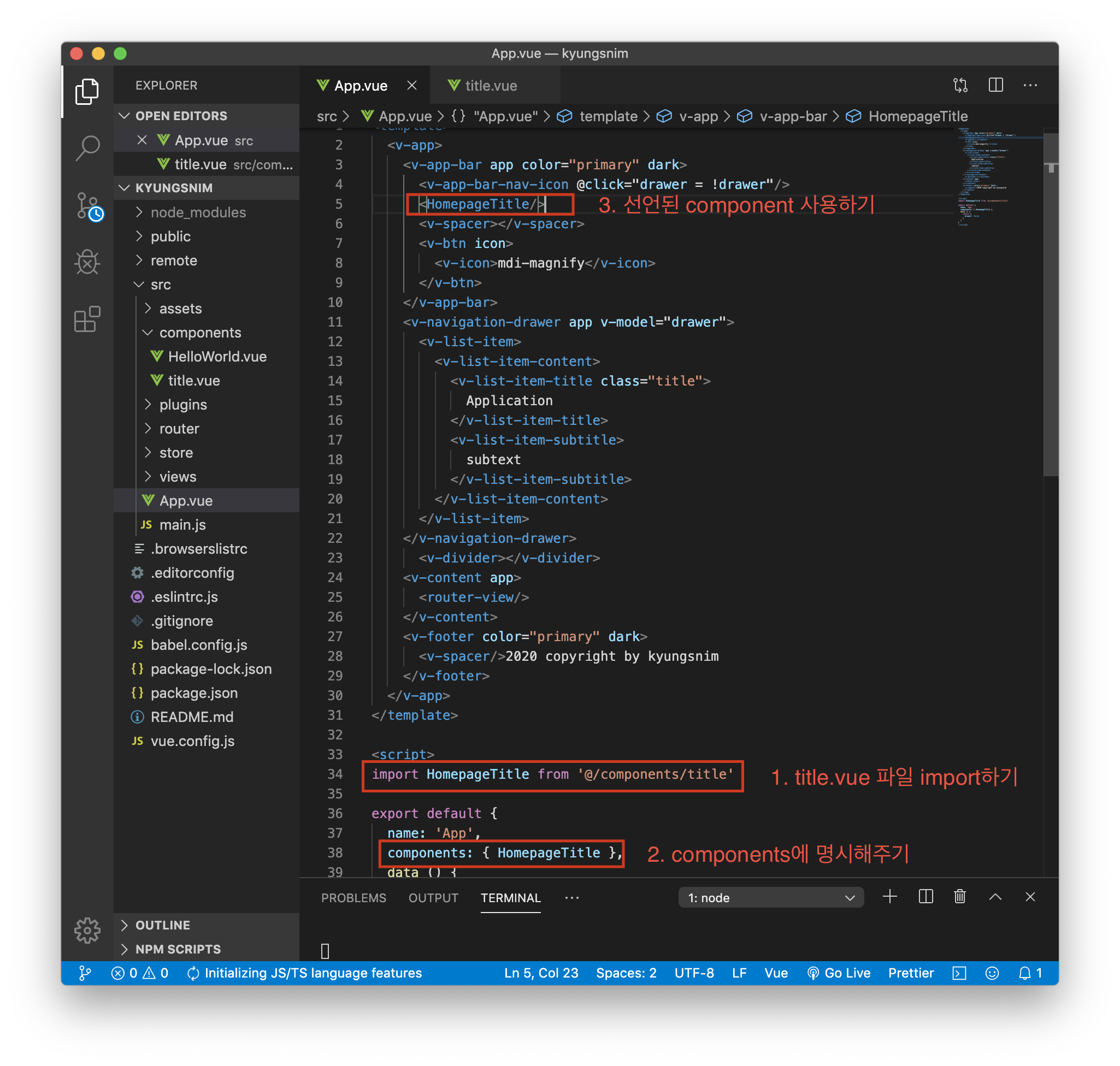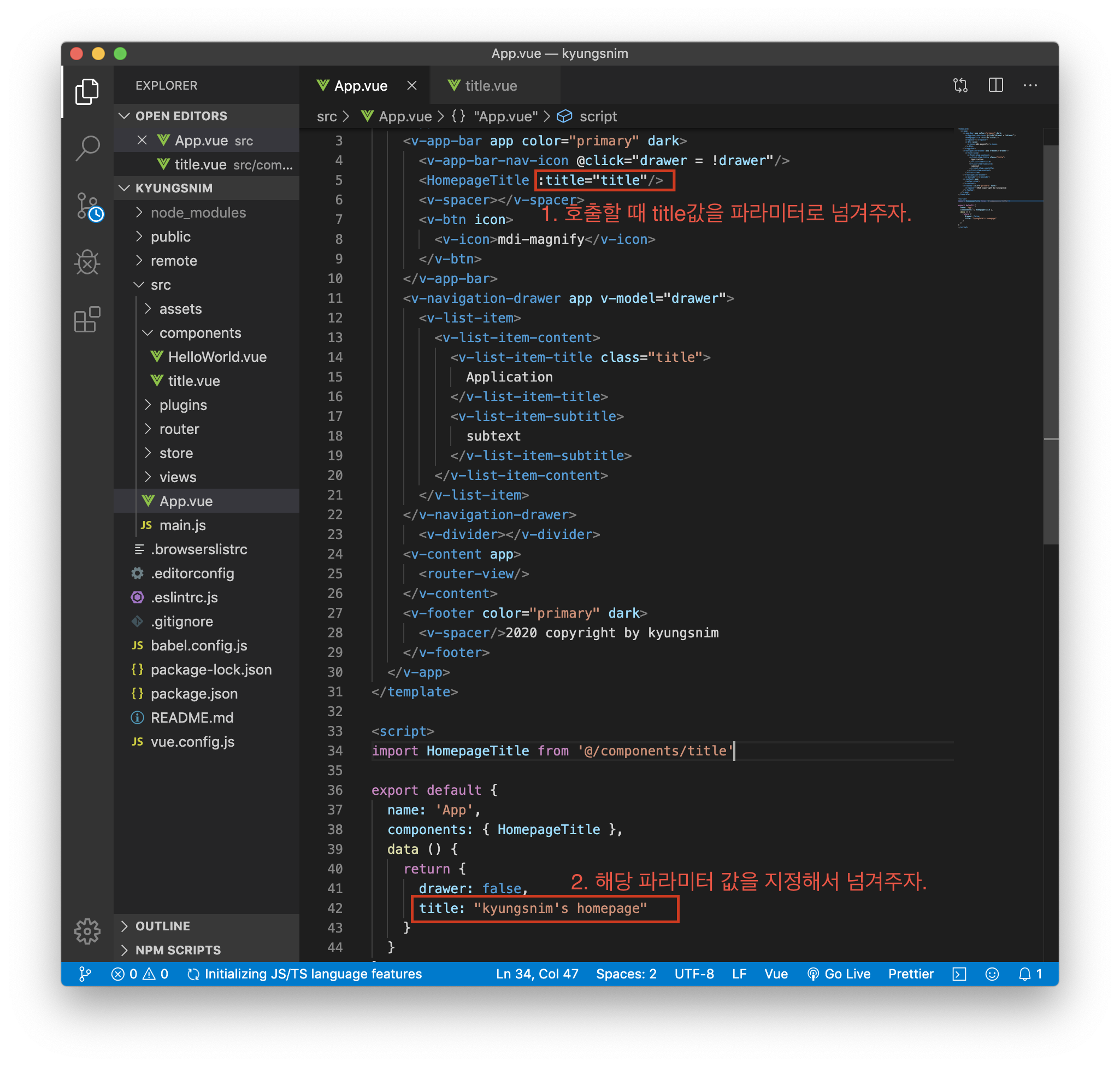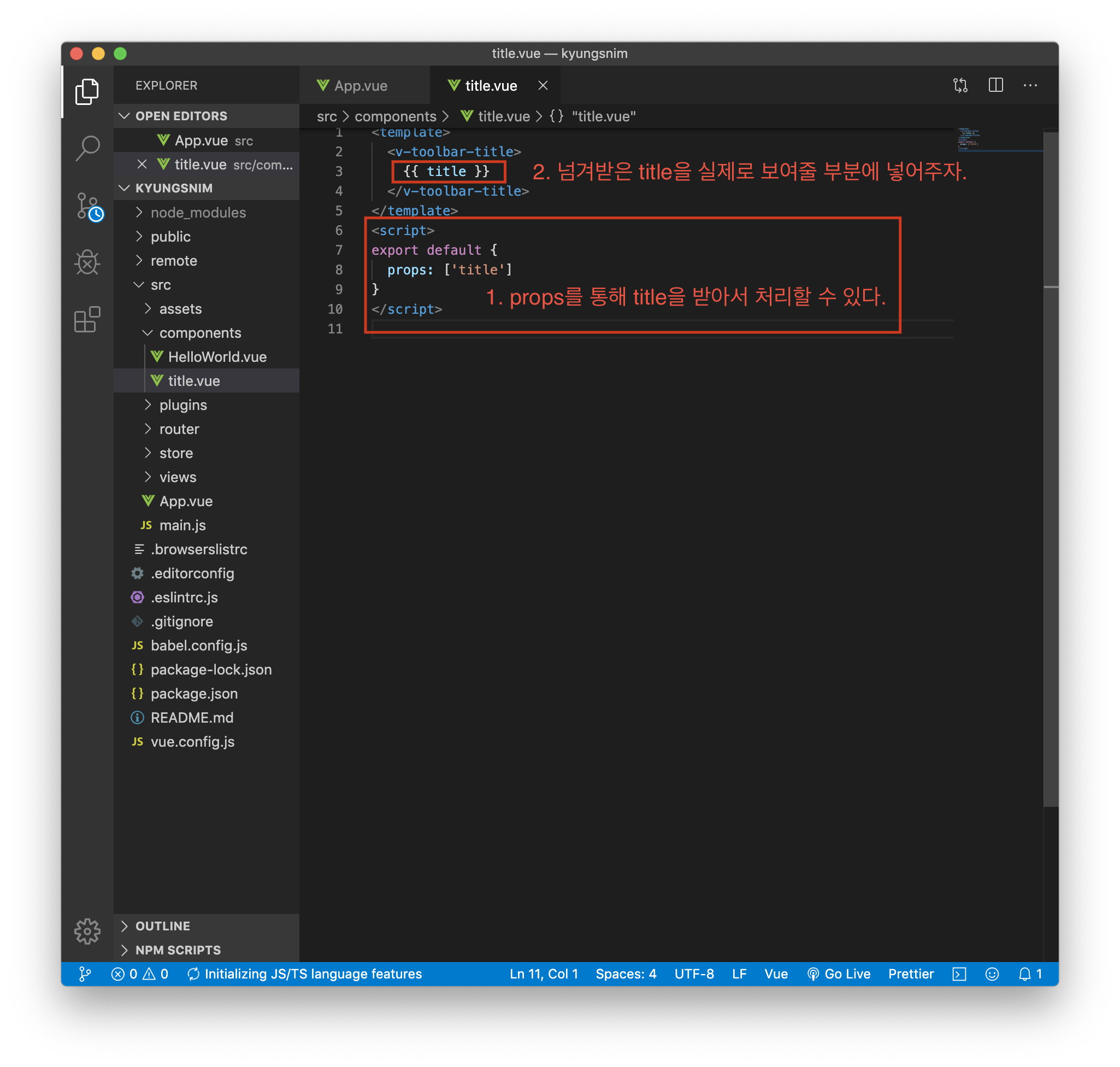 - 이제 title.vue에서 아래와 같이 처리해주자.