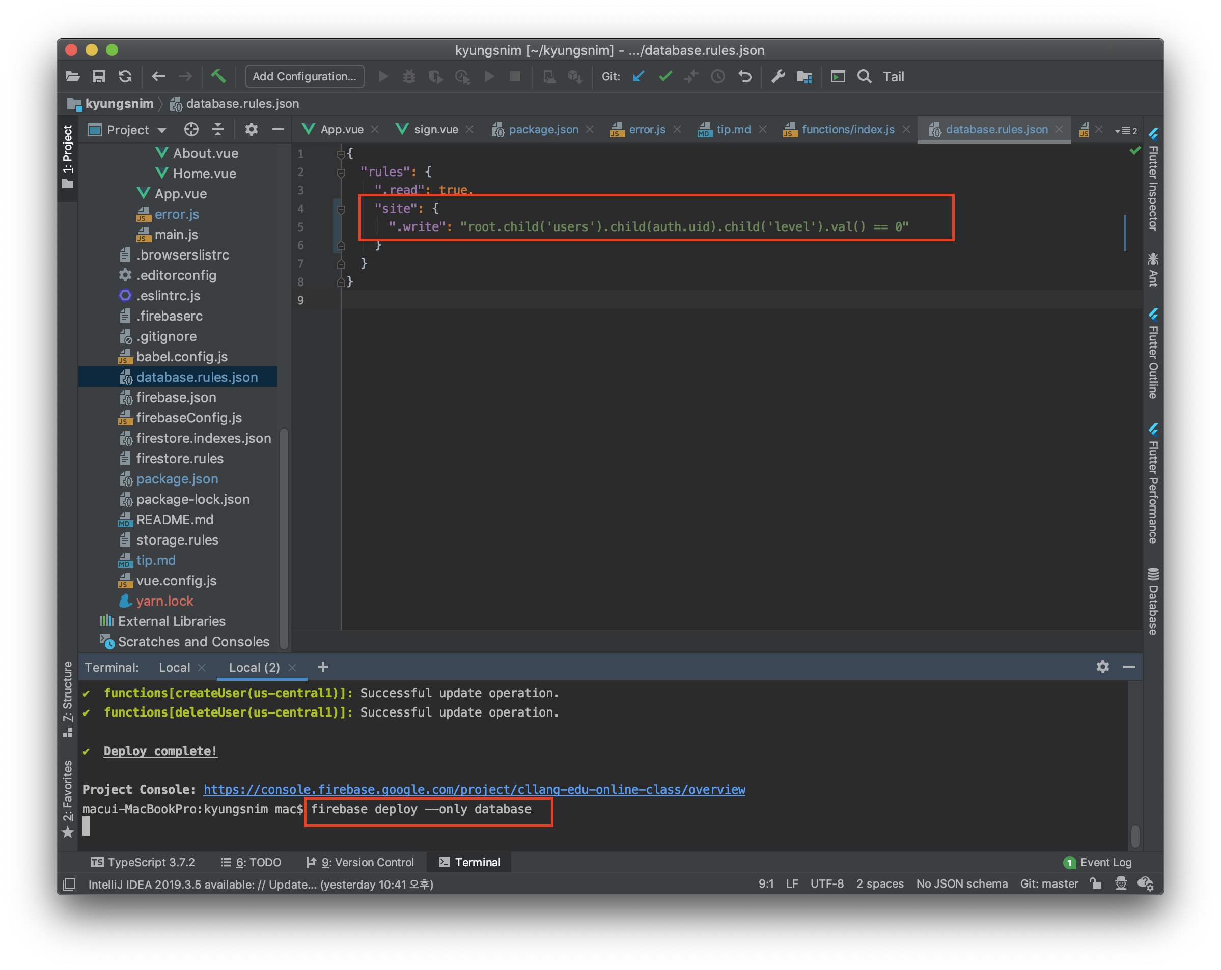 - 관리자만 쓰기를 할 수 있도록 database rule 변경해보자. (뭔가 잘 안되는 중)