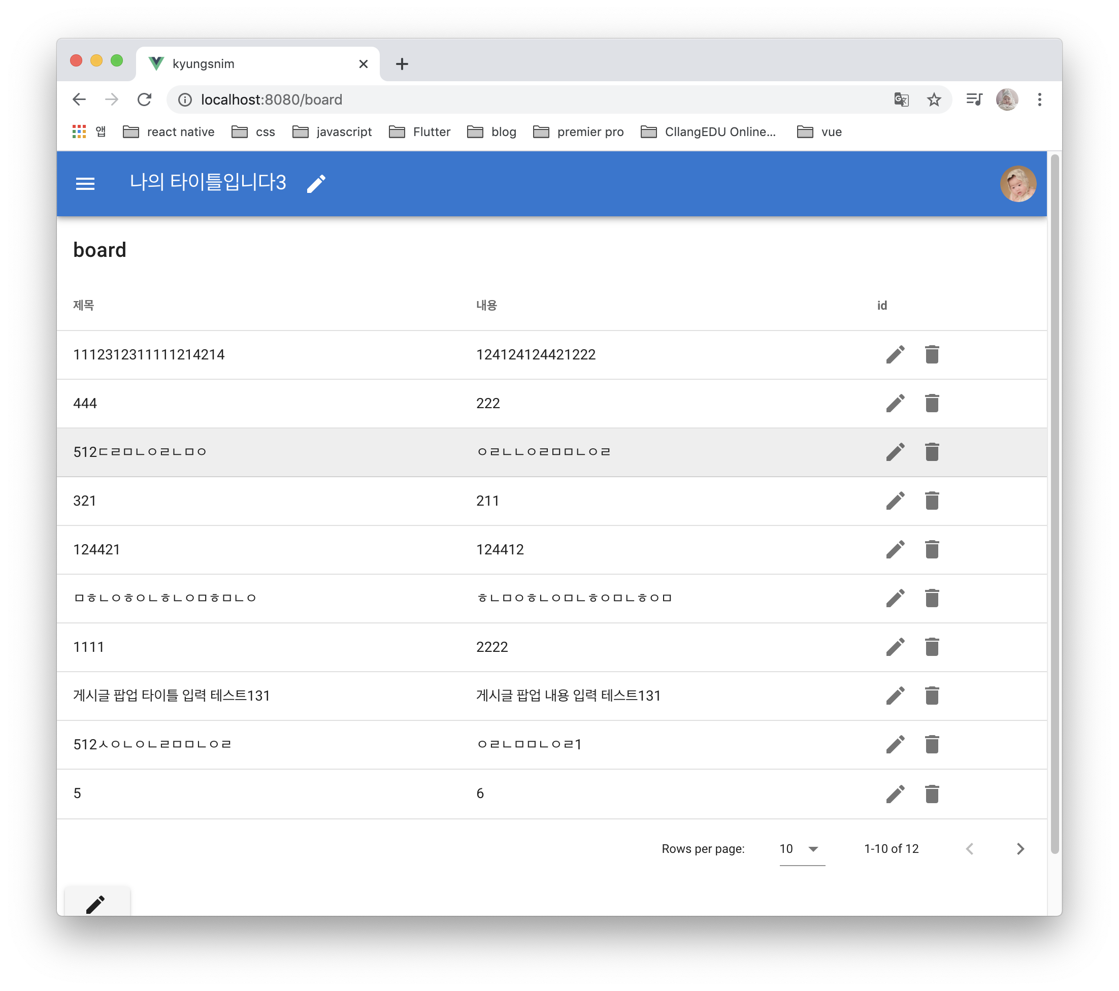- 이제 글을 쓰거나 수정, 삭제했을 때 실시간으로 게시판에 바뀌도록 동작한다.