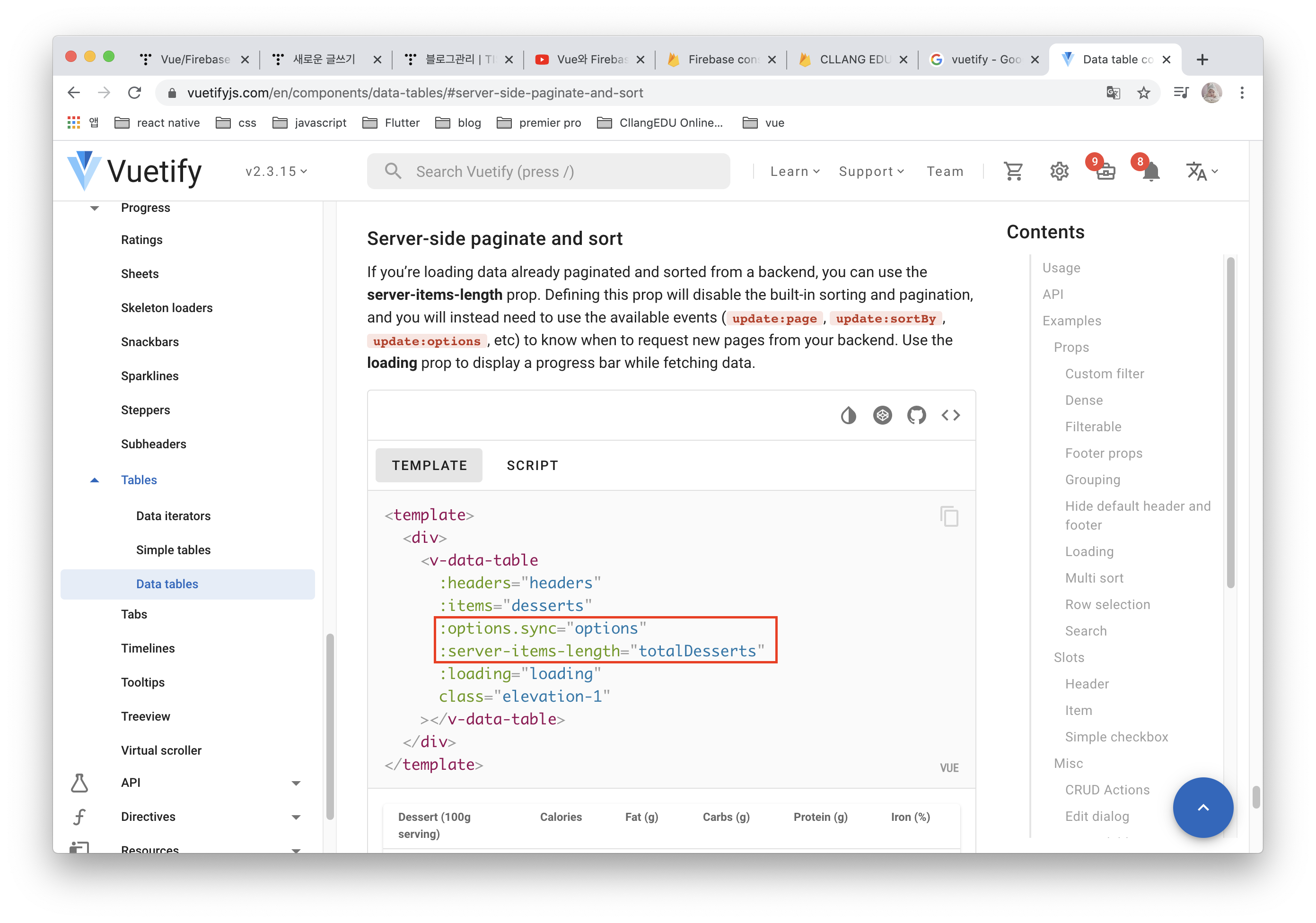 - 아래의 2가지 정도만 있으면 된다. 실질적으론 server-items-length만 있으면 됨