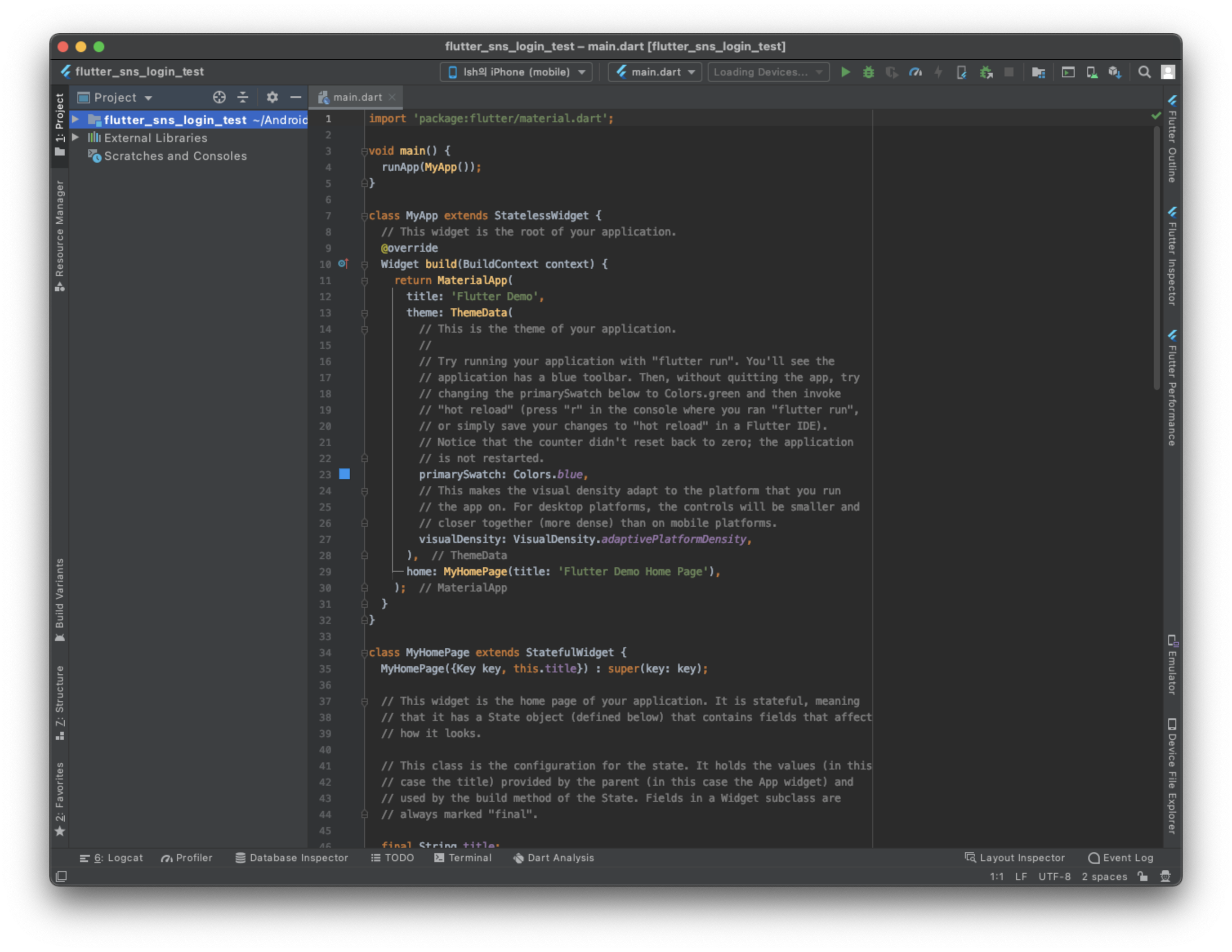 이제 Flutter 프로젝트까지 생성되었다면 앞으로 Android / iOS 플랫폼 추가하는 것만 하면 된다. 거의 다 왔으니 지치지 말고 조금만 더 가보도록 하자.