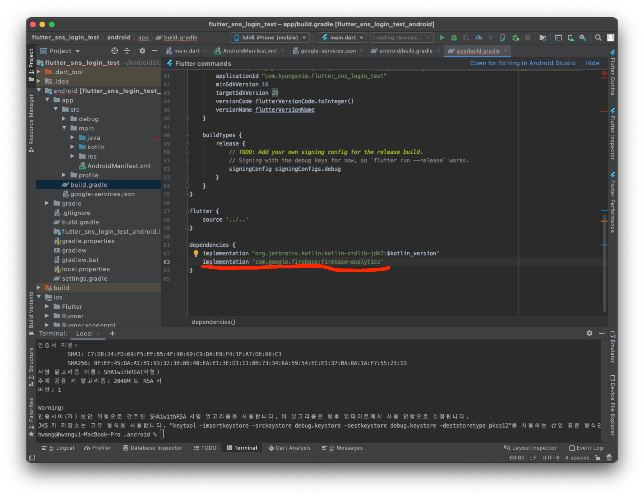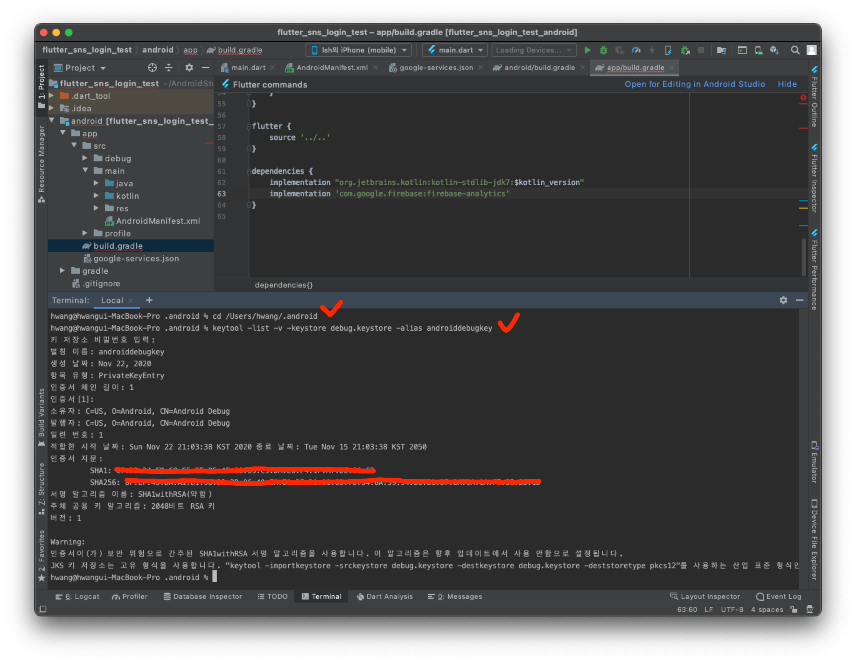 - 구글 로그인을 최종적으로 사용하기 위해선 key hash 등록도 필요하다. 이것도 지금 해두는 것이 좋다.