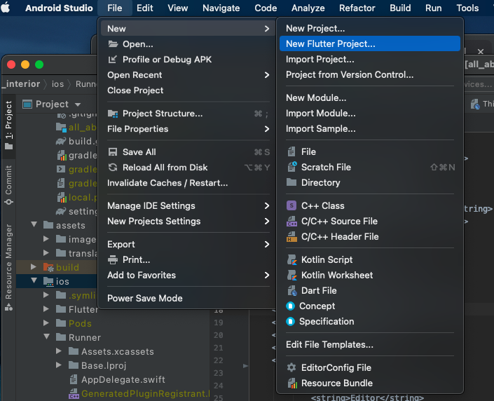 - 자, Android Studio를 열어 Flutter 프로젝트를 생성하자. (다른 IDE 사용자도 각자 프로젝트 생성하면 됩니다.)