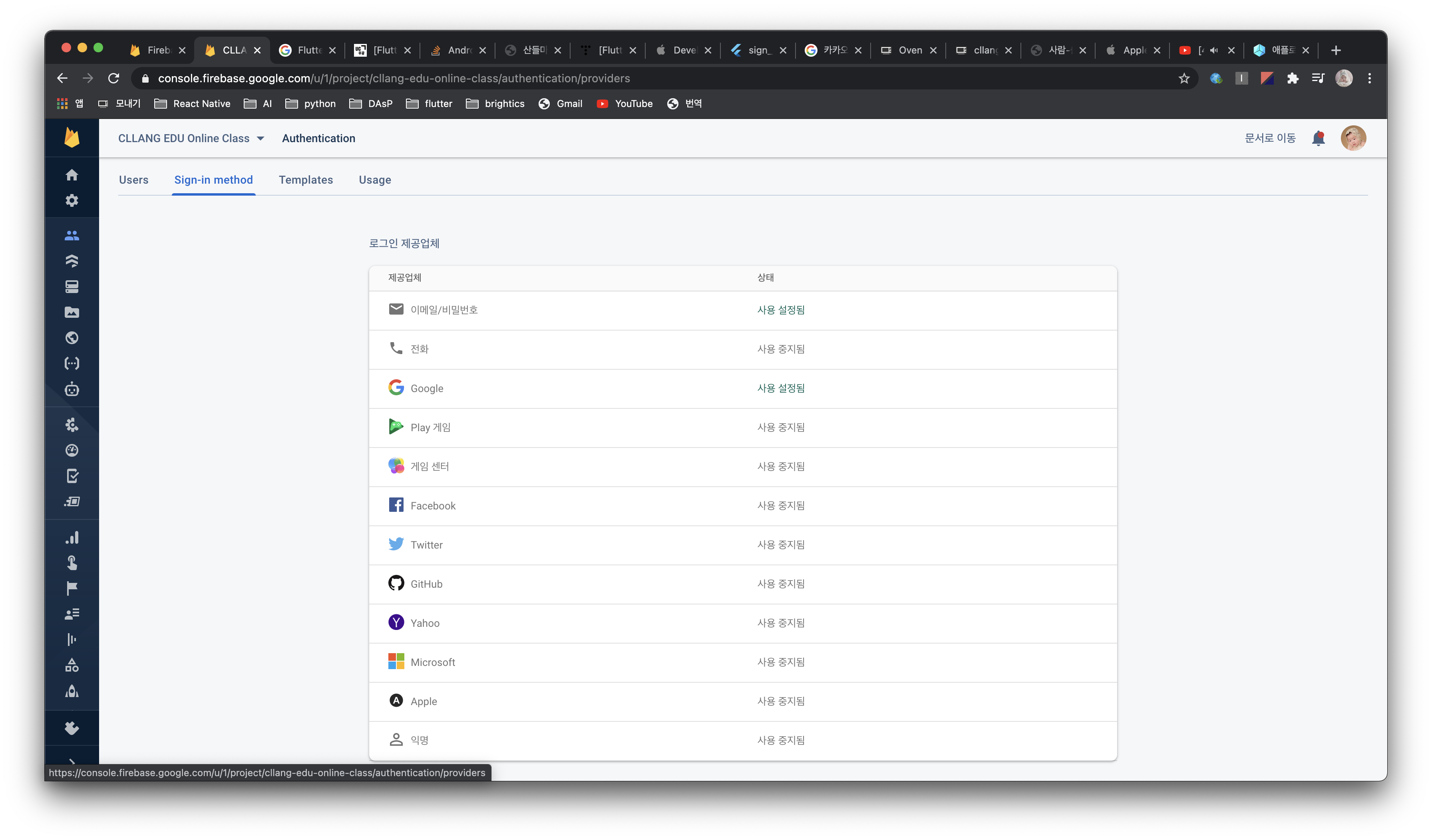 Firebase의 Authentication 플랫폼은 로그인을 하기 위한 인증 서비스이다. 이 곳에 Apple 로그인 기능을 추가해야 한다.