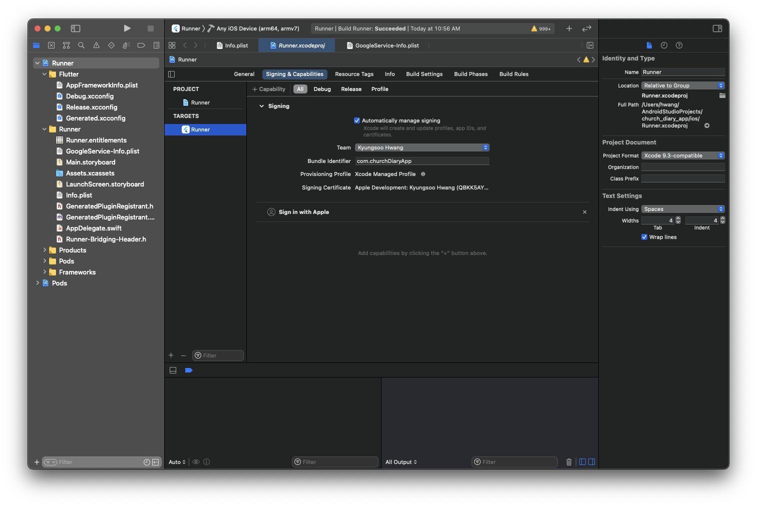 - apple_sign_in, firebase_auth, flutter_secure_storage 패키지 pubspec.yaml에 추가하기 (버전은 각자 맞추도록 하자.)