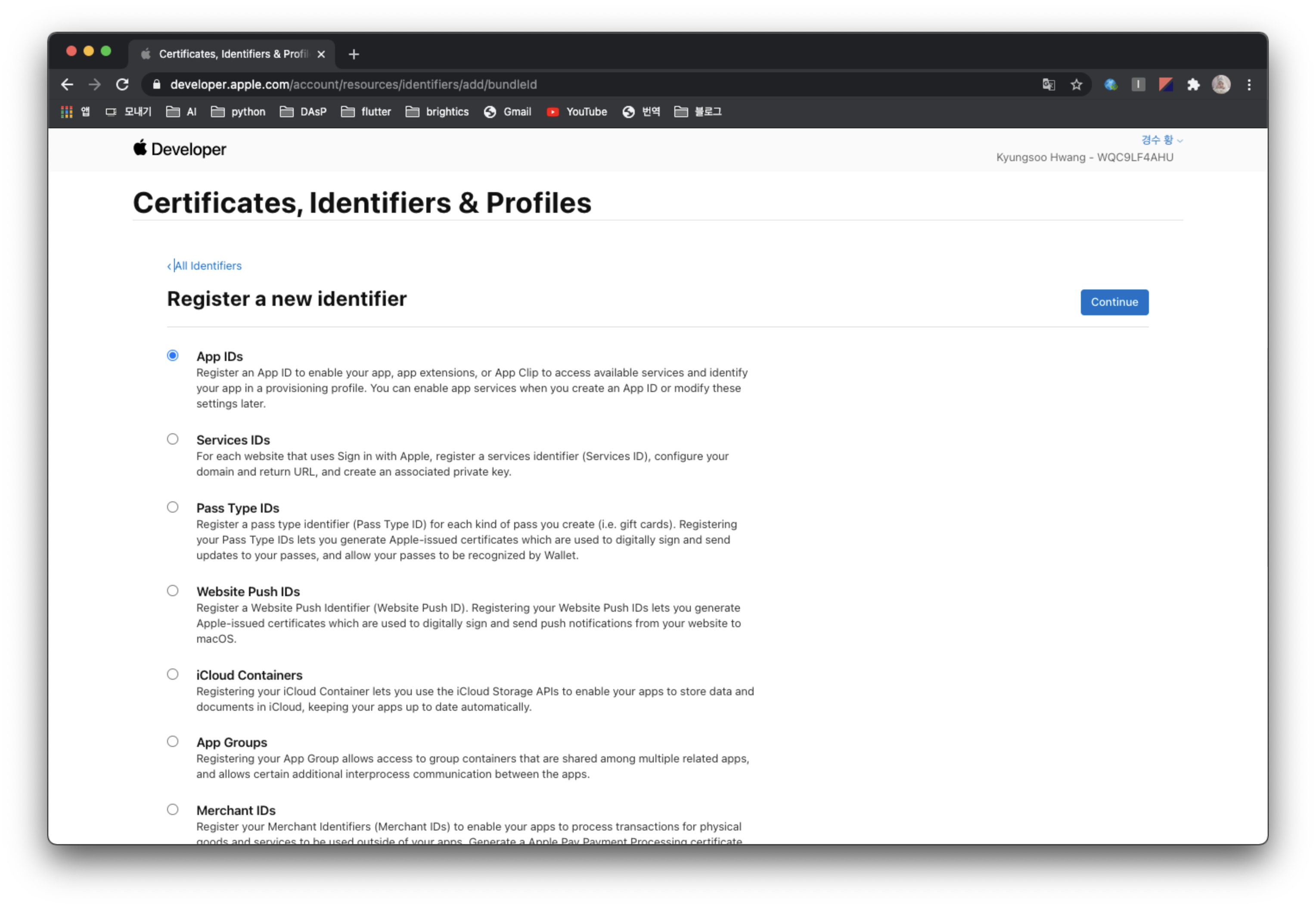 이제 Services ID 를 생성해보자.
