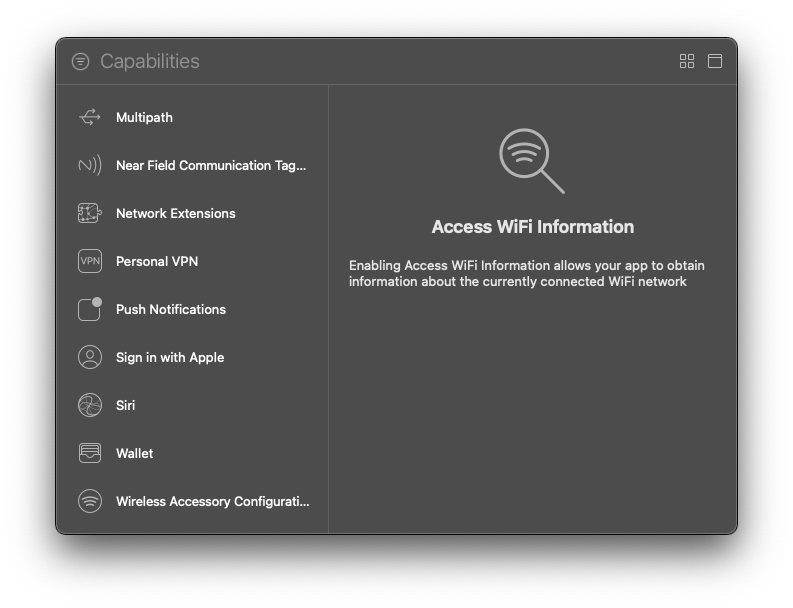 위 캡쳐화면에서 + Capability 를 추가하여 Sign in with Apple 을 추가해주자