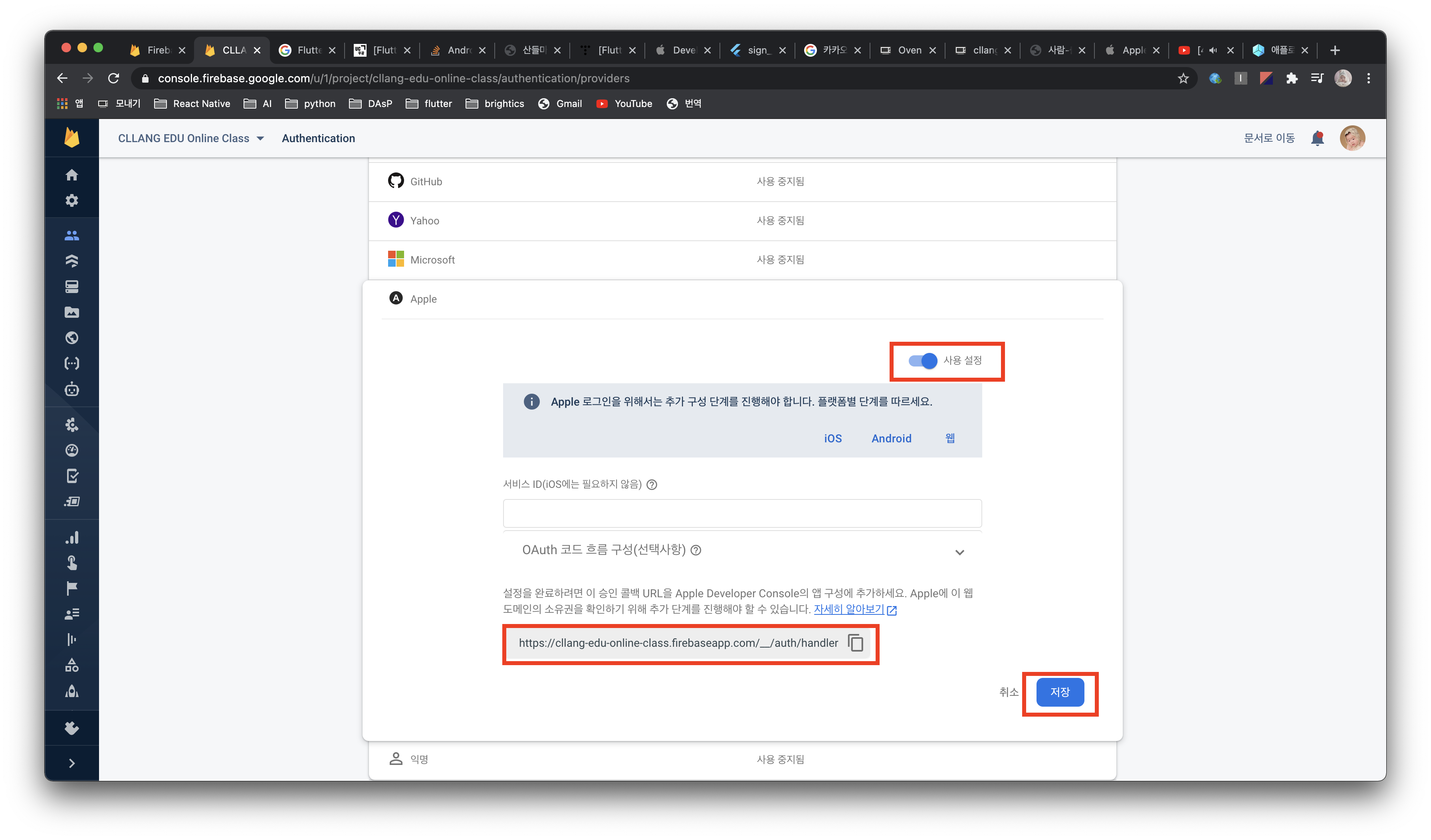 #1. Firebase Authentication > Apple sign in 활성화하기