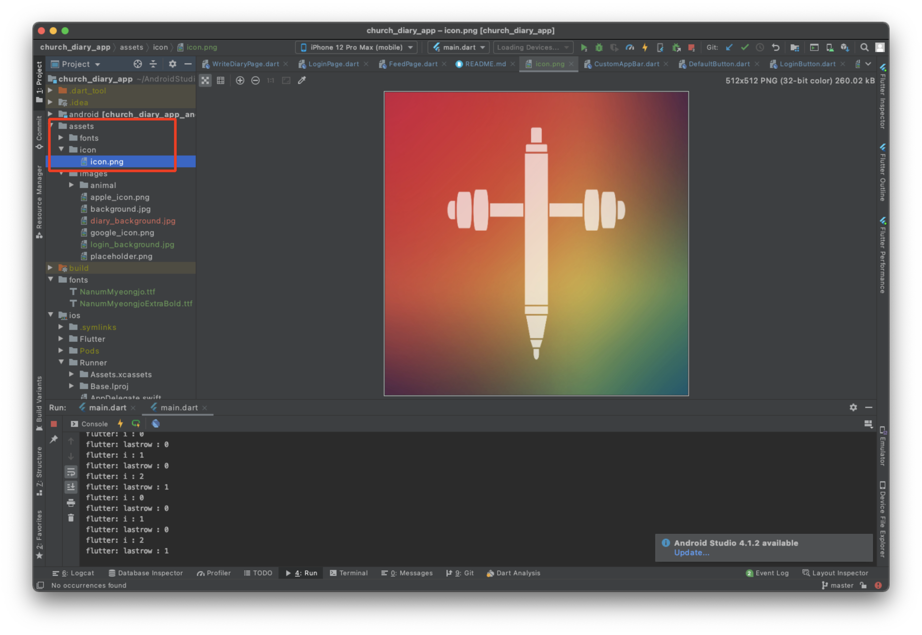 - icon.png 파일을 내 flutter 프로젝트 폴더 하위의 assets/icon/ 경로로 옮겨주자.