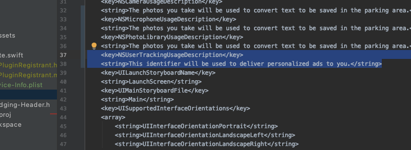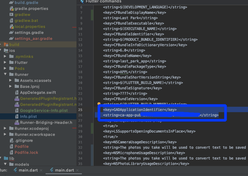 - 프로젝트의 ios > Runner > Info.plist 에 아래 코드를 추가하자.