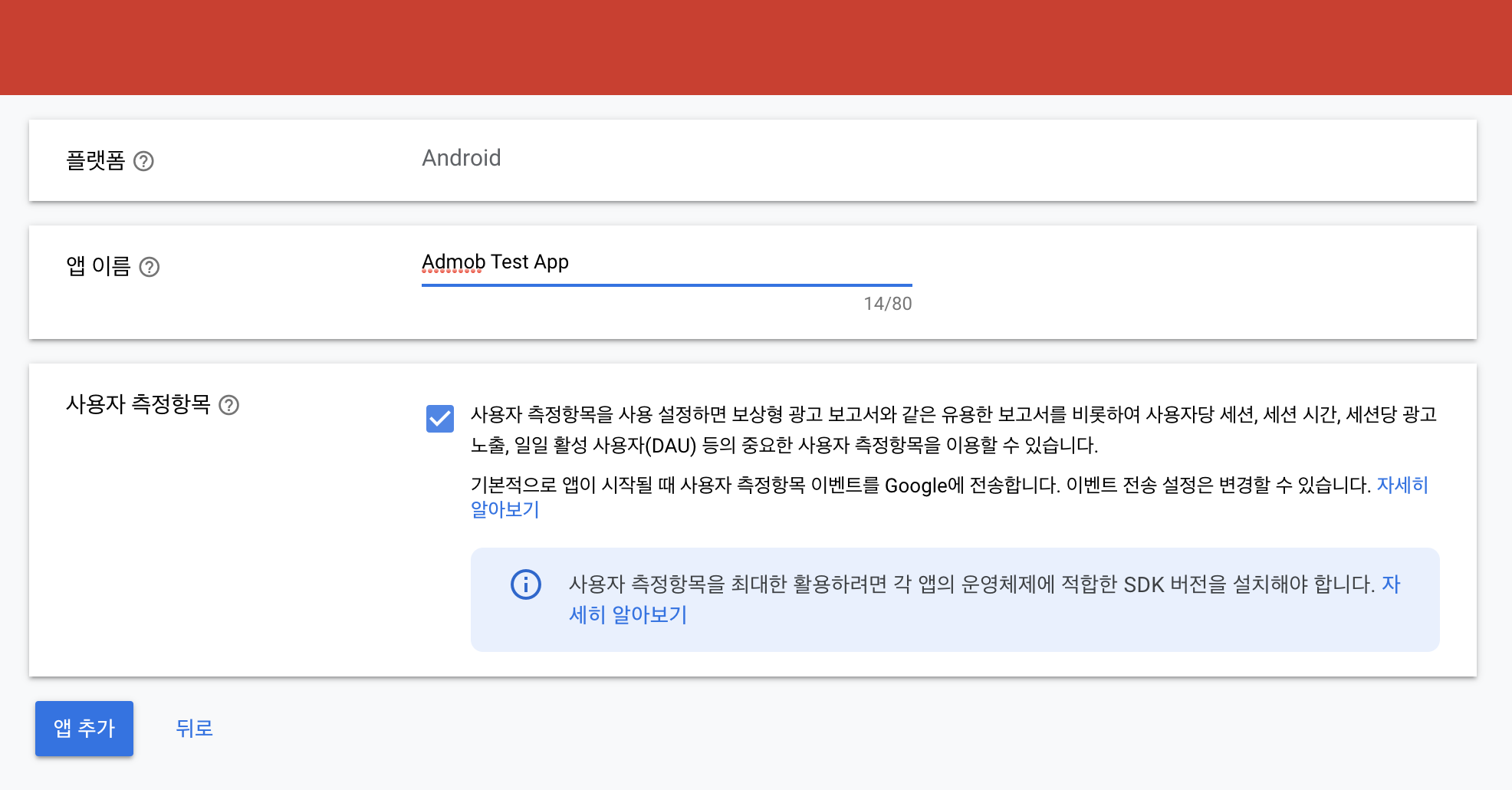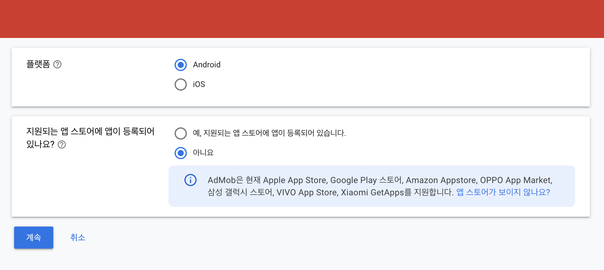 ⭐️광고단위 ID : 실제 광고를 보여줄 소스 부분에 사용됨 (뒤에 나온다.)