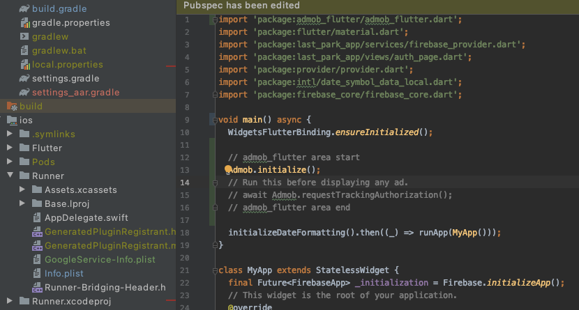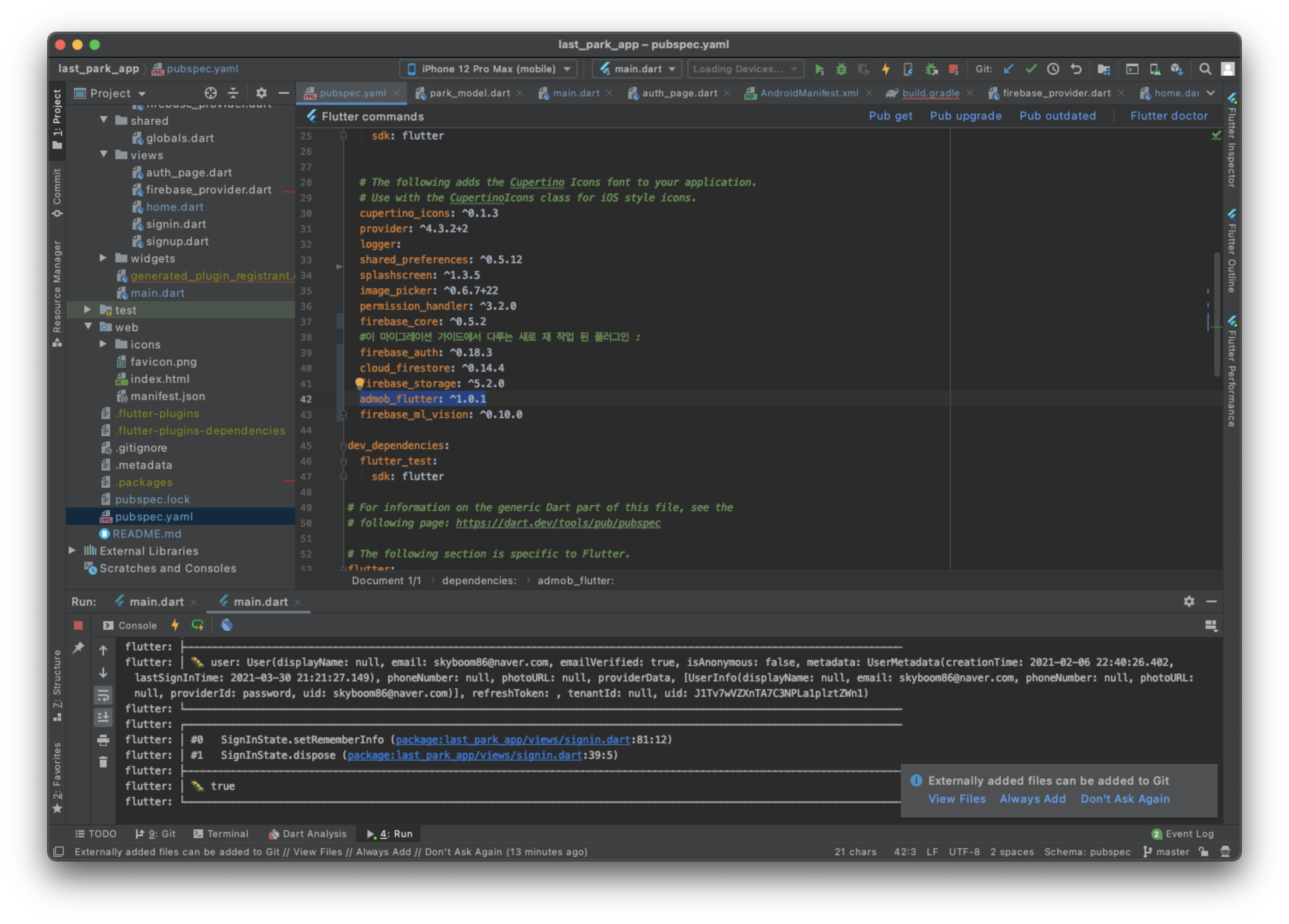 #1. admob_flutter 패키지 pubspec.yaml 파일에 추가