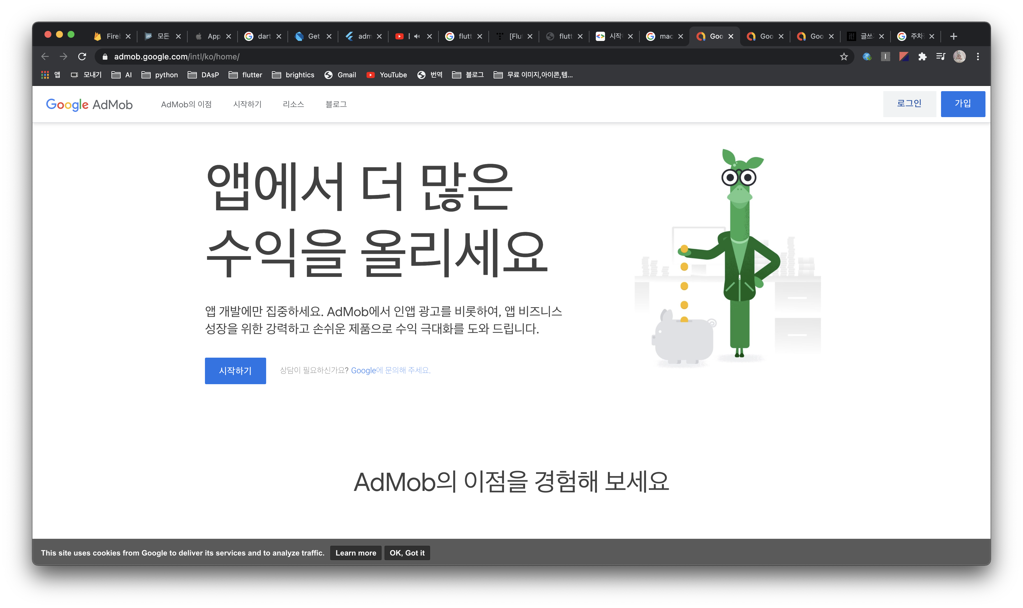 admob_flutter 패키지를 이용해 배너광고, 전면광고, 보상형광고 등 앱에 달 수 있는 광고를 달아보자.