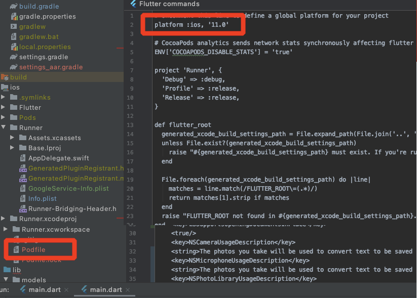 - 마지막이다. iOS 14 이상부터는 ios/Podfile 에 아래 소스도 추가해줘야 한다. (나는 11.0 을 추가했는데 9.0 이상이면 된다.)