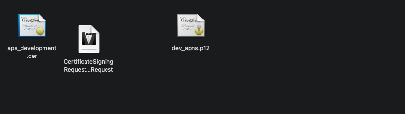 - Finder 를 하나 열어서 별도 위치에 files 폴더 하나 생성해두자. (총 4개의 파일이 만들어질 것이다. CSR, APNs Certificate, 인증서 내보내기 P12파일, 인증키 P8파일 등)