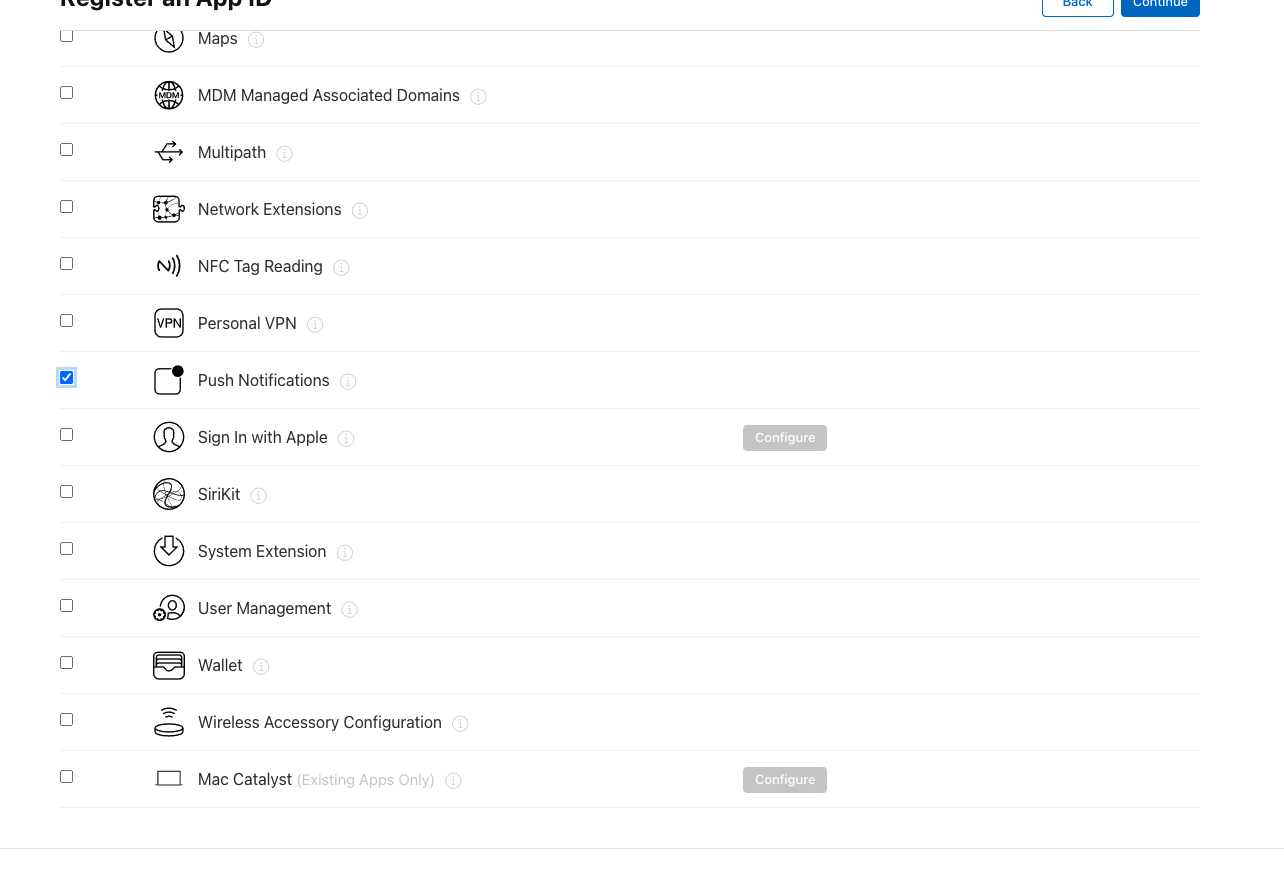 - APN 인증키의 경우 P8파일 필요 > Apple Developer 사이트 > Certificates, Identifiers & Prrofiles