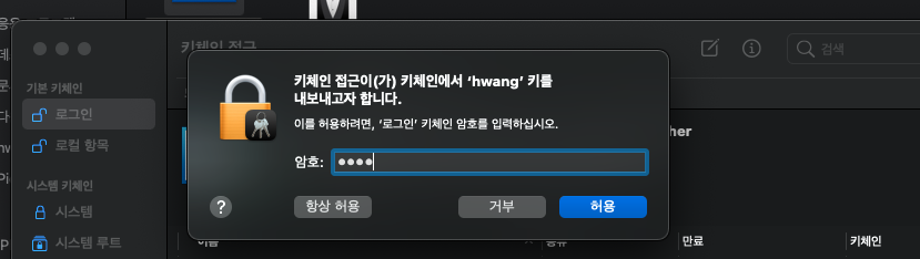 - 키체인 접근 실행 > 인증서 지원 > 인증 기관에서 인증서 요청...