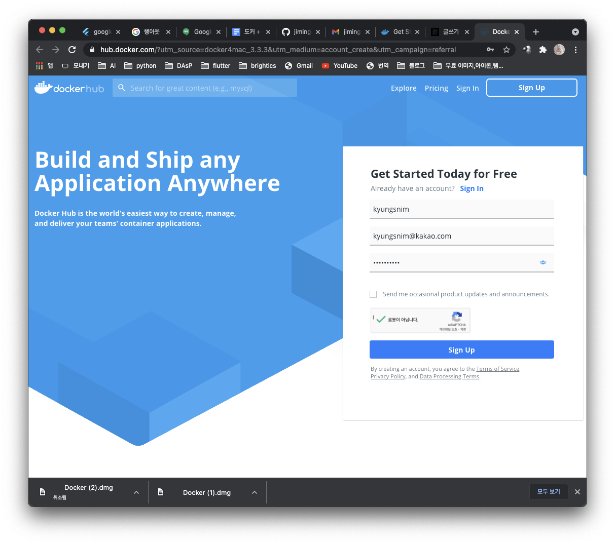 hub.docker.com 사이트에 접속하여 회원가입도 해주자.