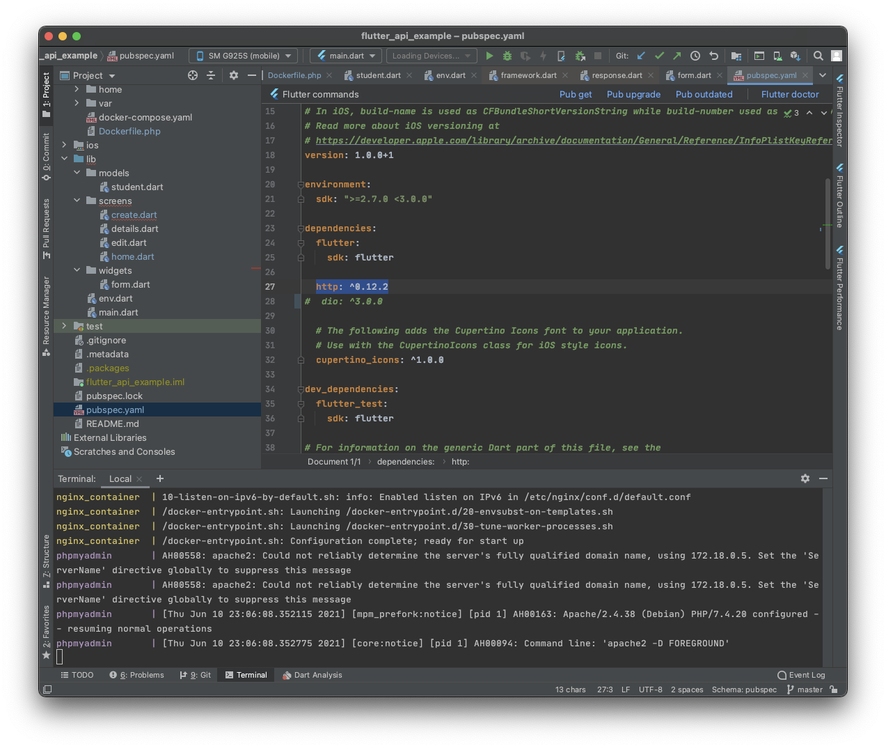 나는 현재 docker 폴더를 flutter_api_example 하위에 위치하도록 만들었었다.