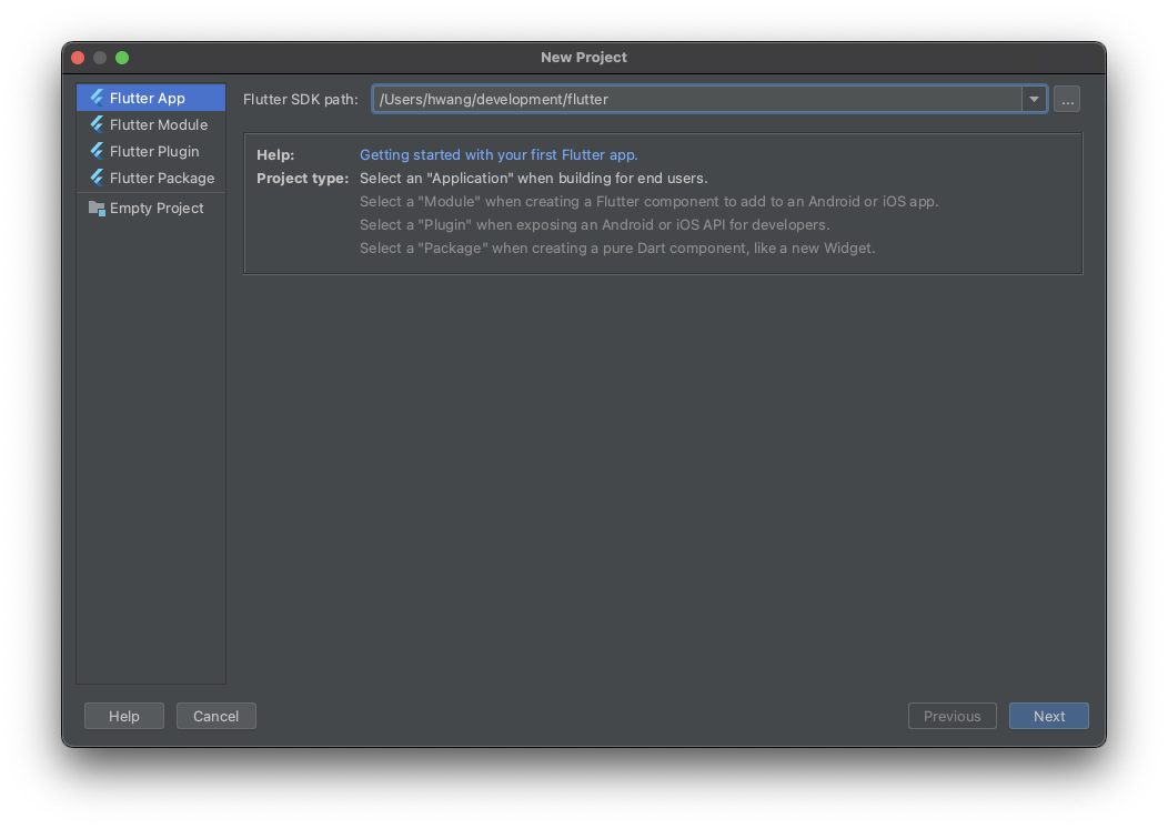 Flutter 프로젝트를 하나 생성해주자. 기존 docker 폴더와 같은 위치에 생성해보겠다.