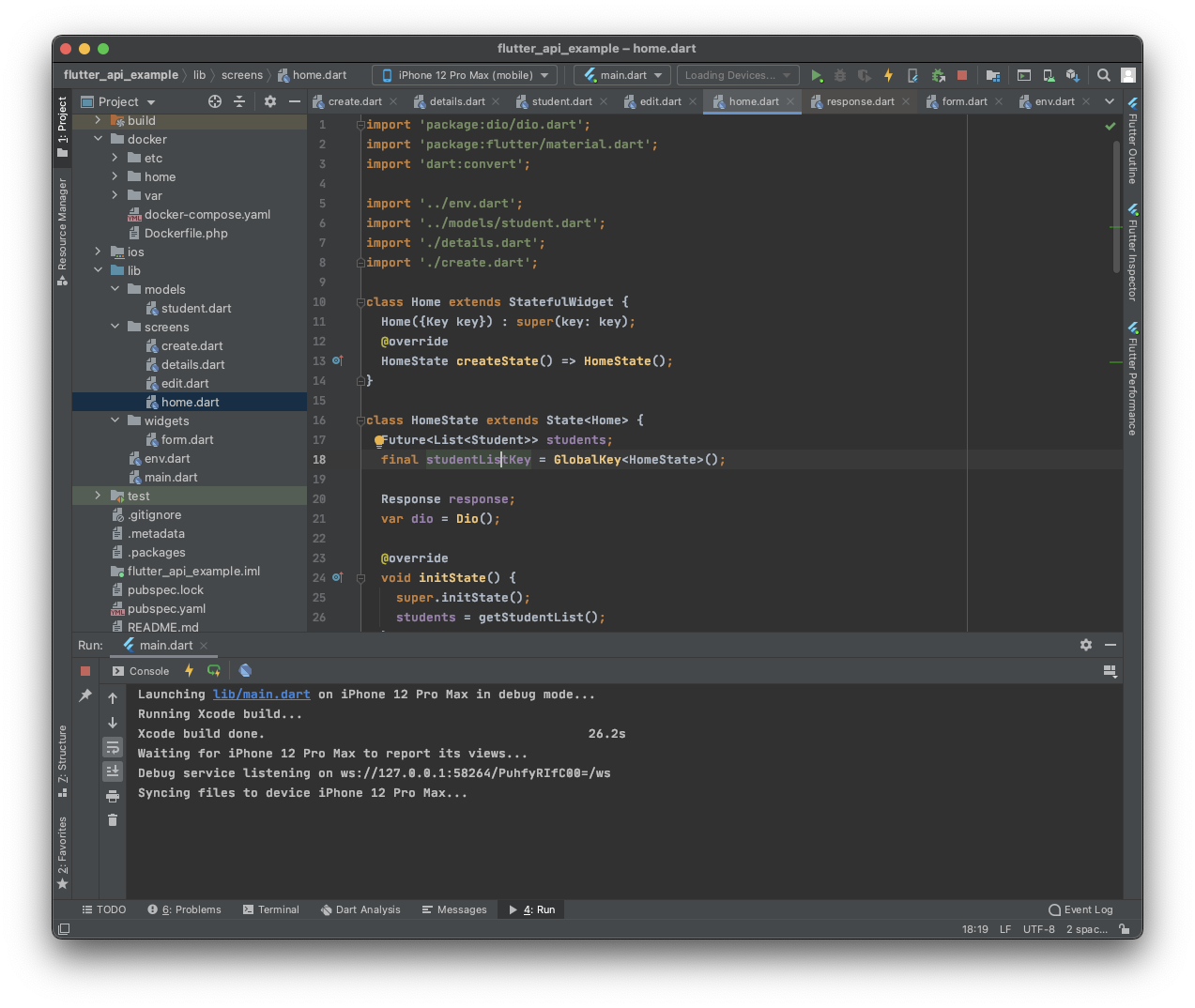 flutter 프로젝트도 생성시 flutter_api_example 폴더에 생성하도록 설정했다.