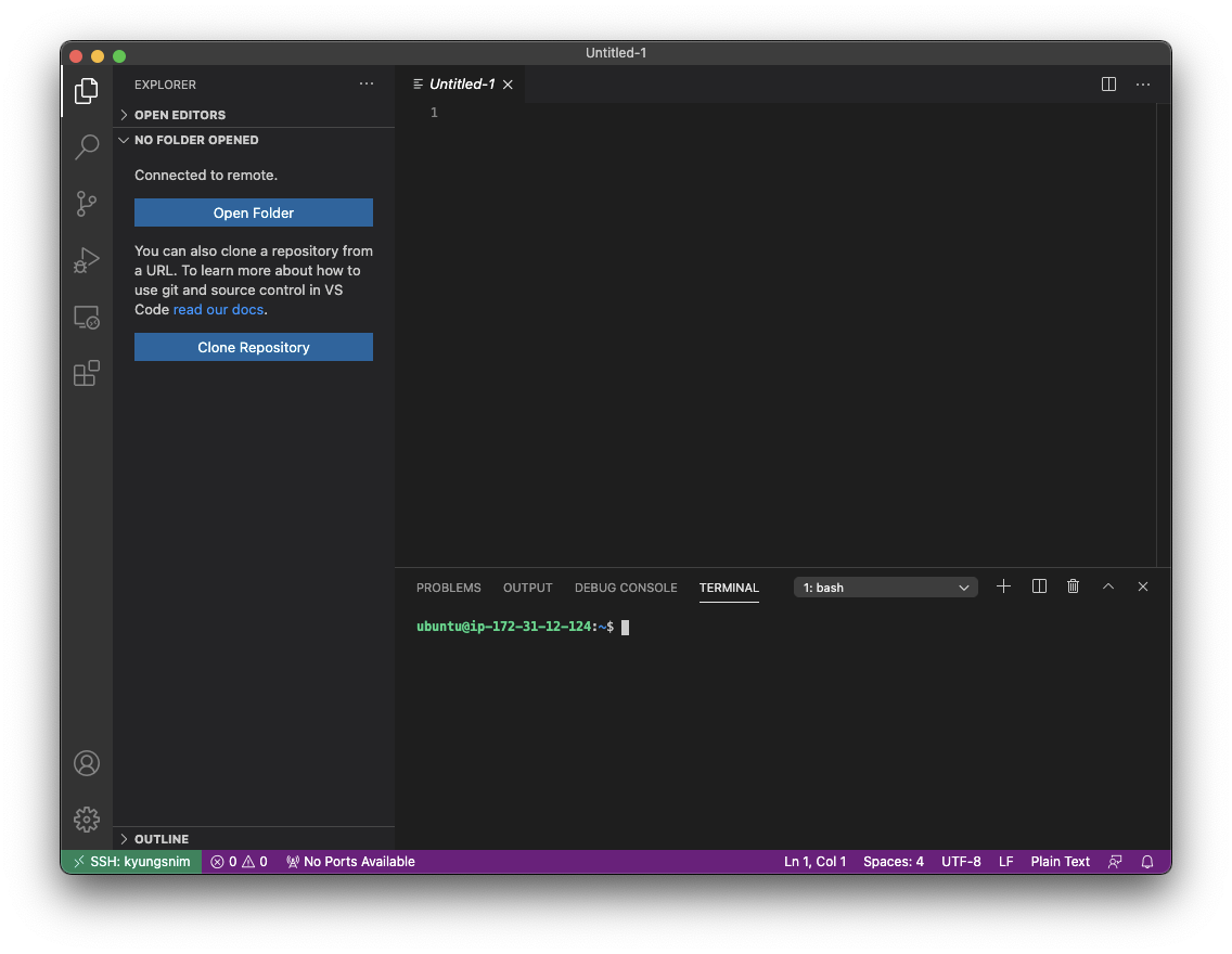 - 권한까지 주었다면 VSCode를 닫고 다시 열어보자. (나의 경우 권한을 주어도 계속 권한없음이 떠서 혹시 몰라 VSCode를 재시작 해보니 아래와 같이 정상 접속됨을 보았다.