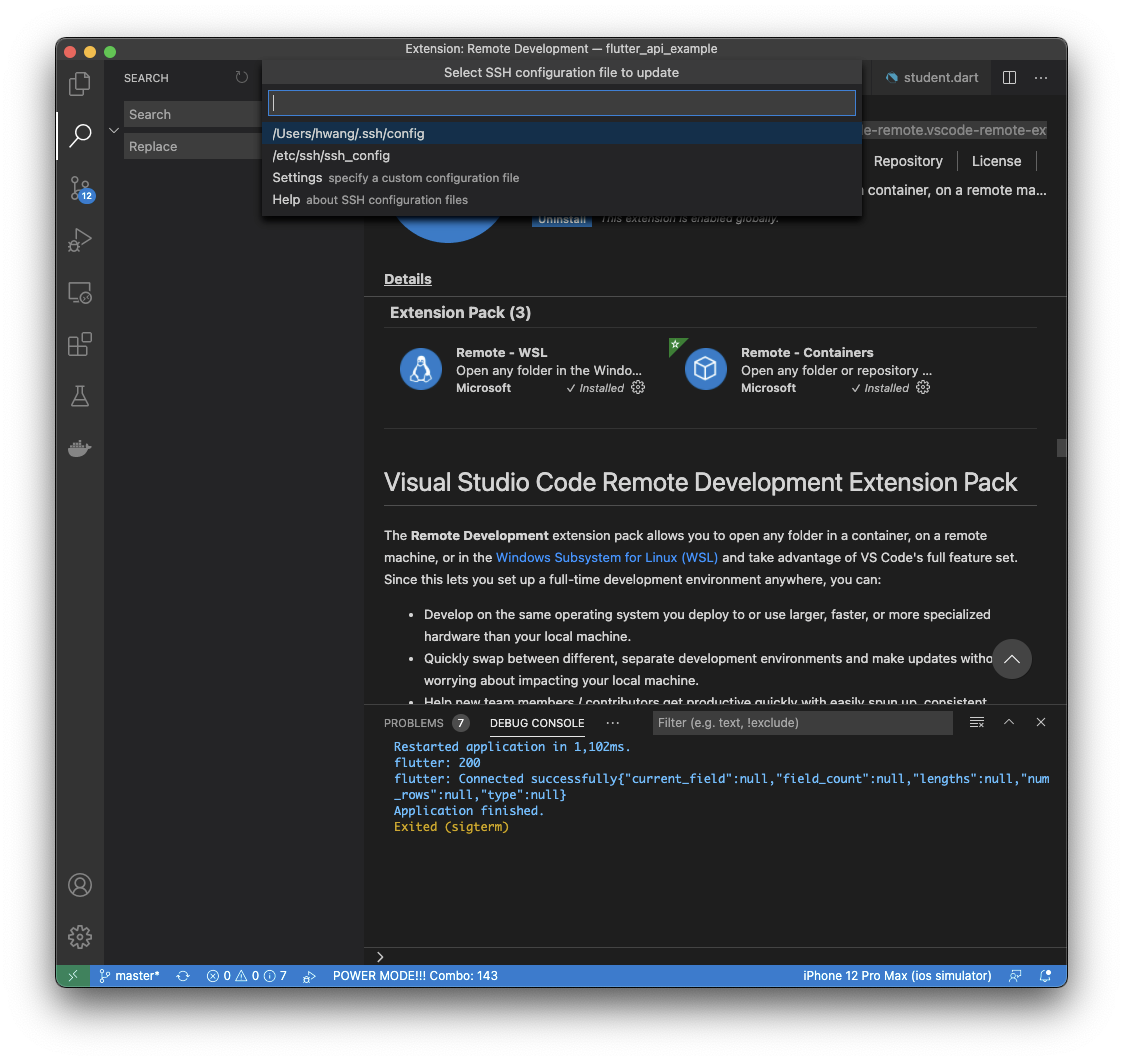 - 이제 다시 Shift + cmd + P 를 누르고 Remote-SSH : Connect to Host... 를 누른 후 위에서 생성한 Host를 클릭하자.