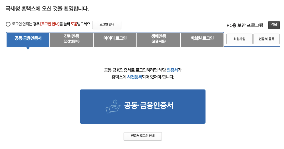 전자기부금영수증 메인화면 - 로그인 > 전자기부금영수증 발급신청 또는 단체의 경우 개별/일괄발급