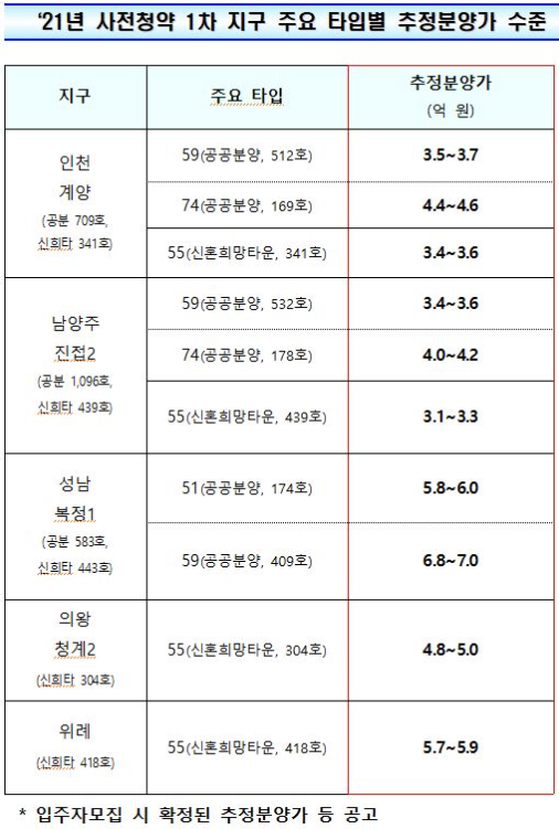 - 위례 신혼희망타운은 5억7천~5억9천으로 예상했다.
