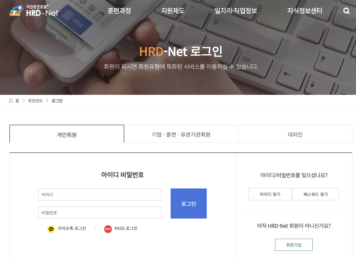 국민내일배움카드 발급받기 (근로자 내일배움카드 발급을 위해서는 HRD-Net에 로그인이 필요하며 공인인증서 등이 필요하다.)