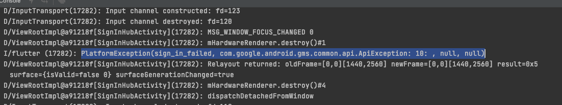 Flutter 구글 로그인 구현 중 PlatformException(sign_in_failed, com.google.android.gms.common.api.ApiException: 10: , null, null) 에러를 만나게 된다면...
