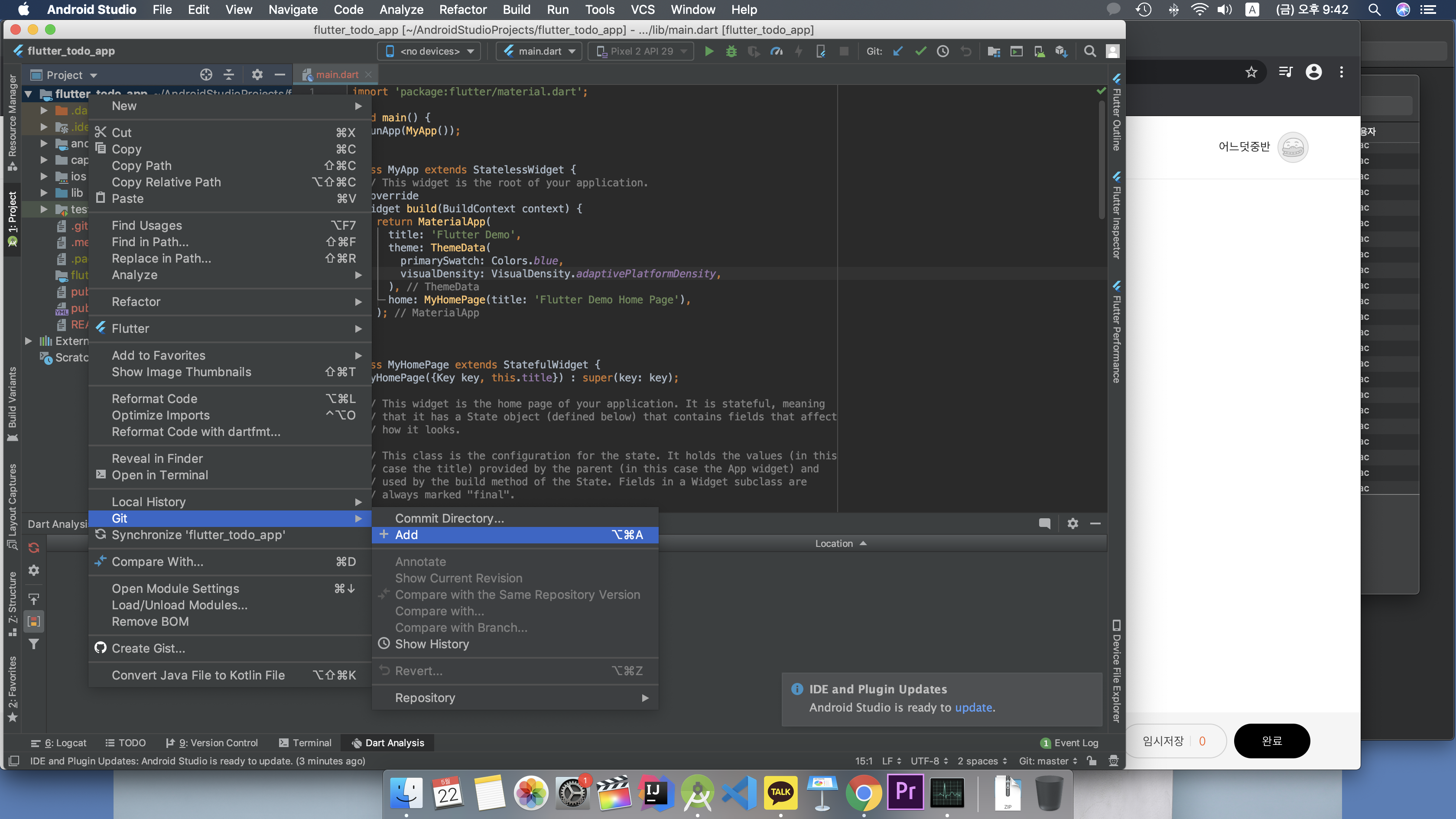 - flutter_todo_app 선택