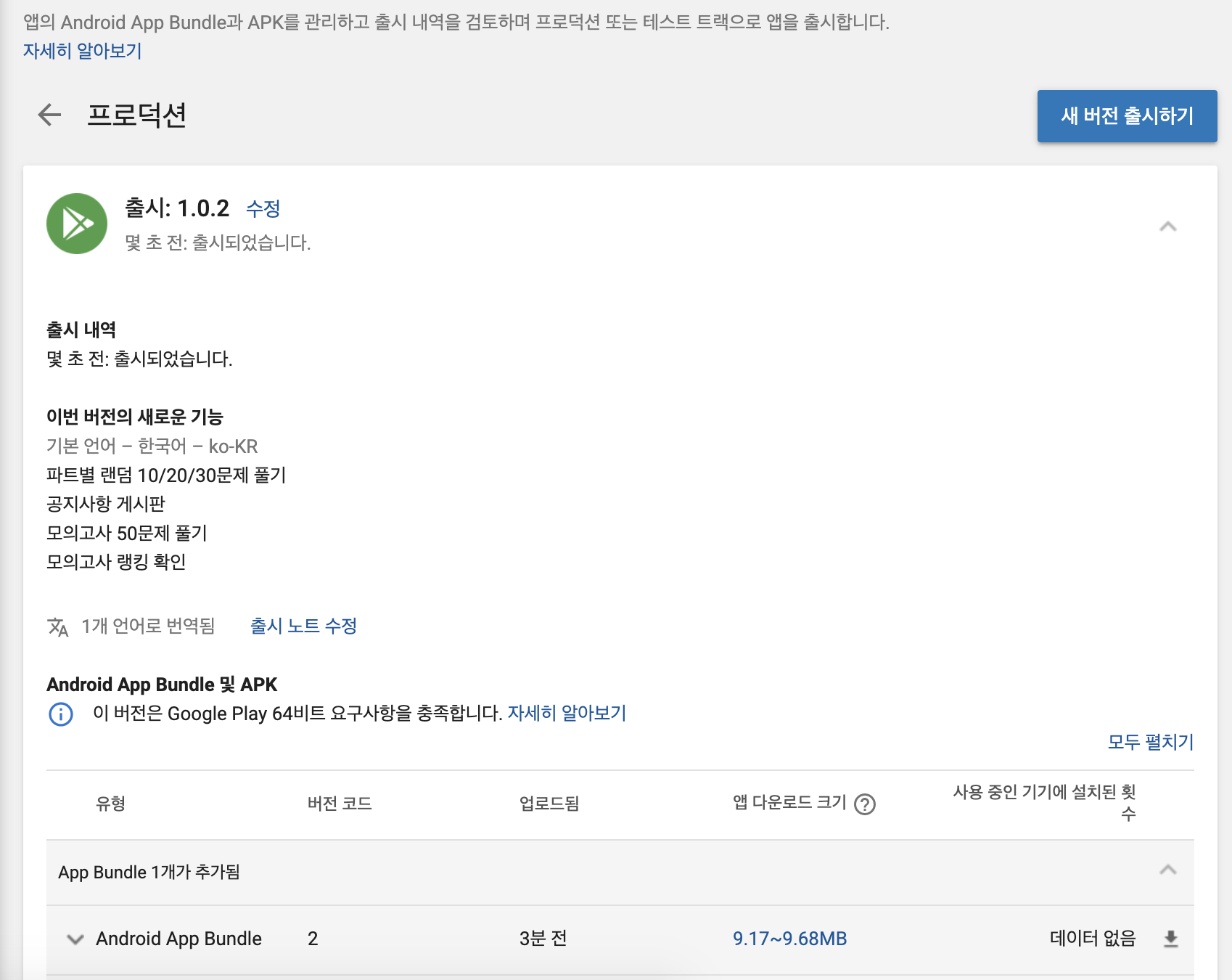 구글콘솔 업로드 : 버전관리에서 번들파일을 업로드 해보자.