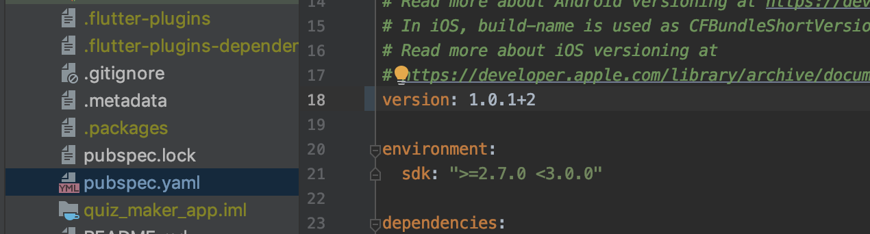1. pubspec.yaml 파일에 버전코드, 버전네임 수정